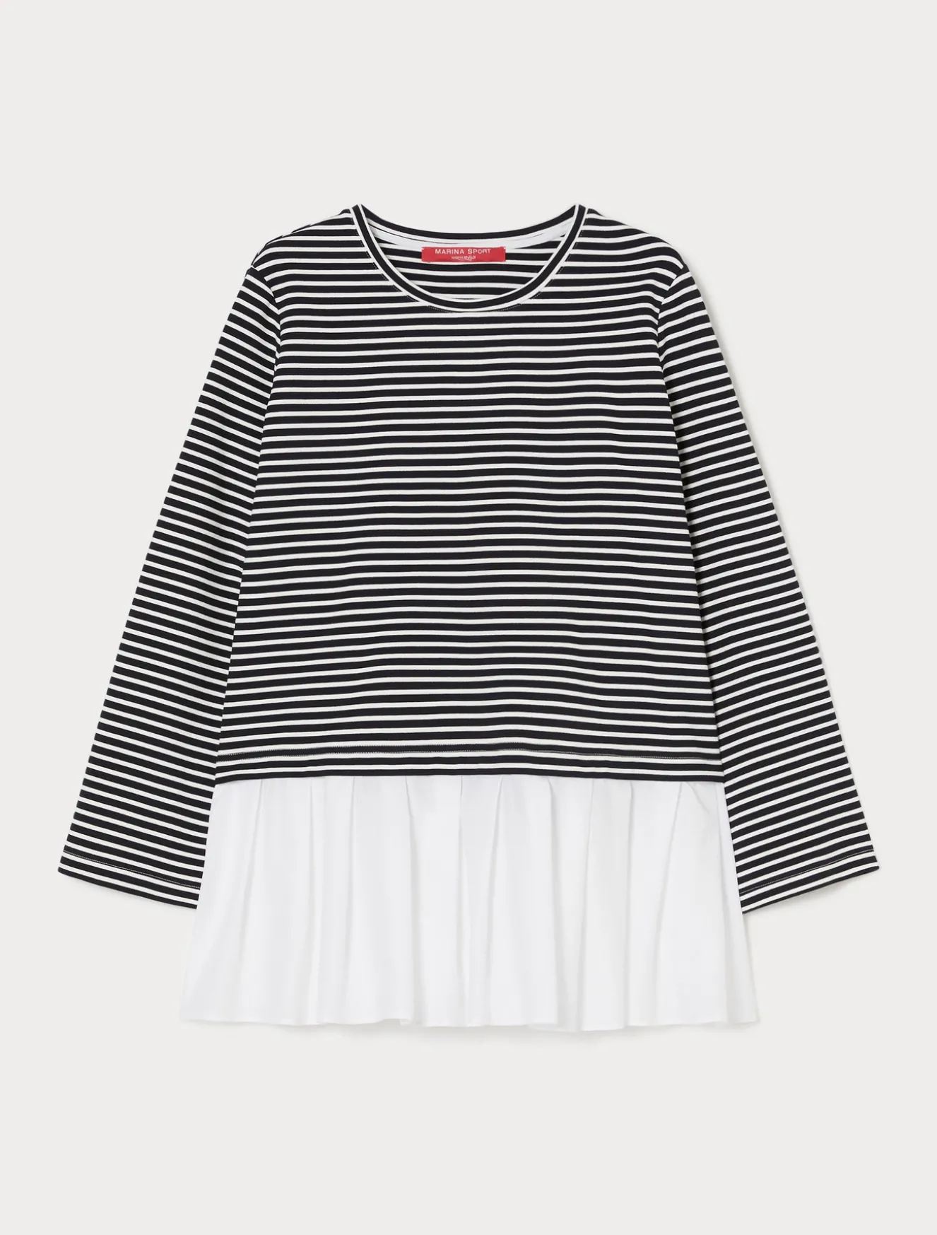 Easywear con un twist per la felpa in jersey punto Milano di viscosa con inserto a pieghe in popeline di cotone. Perfetta per elevare i look del tempo libero.