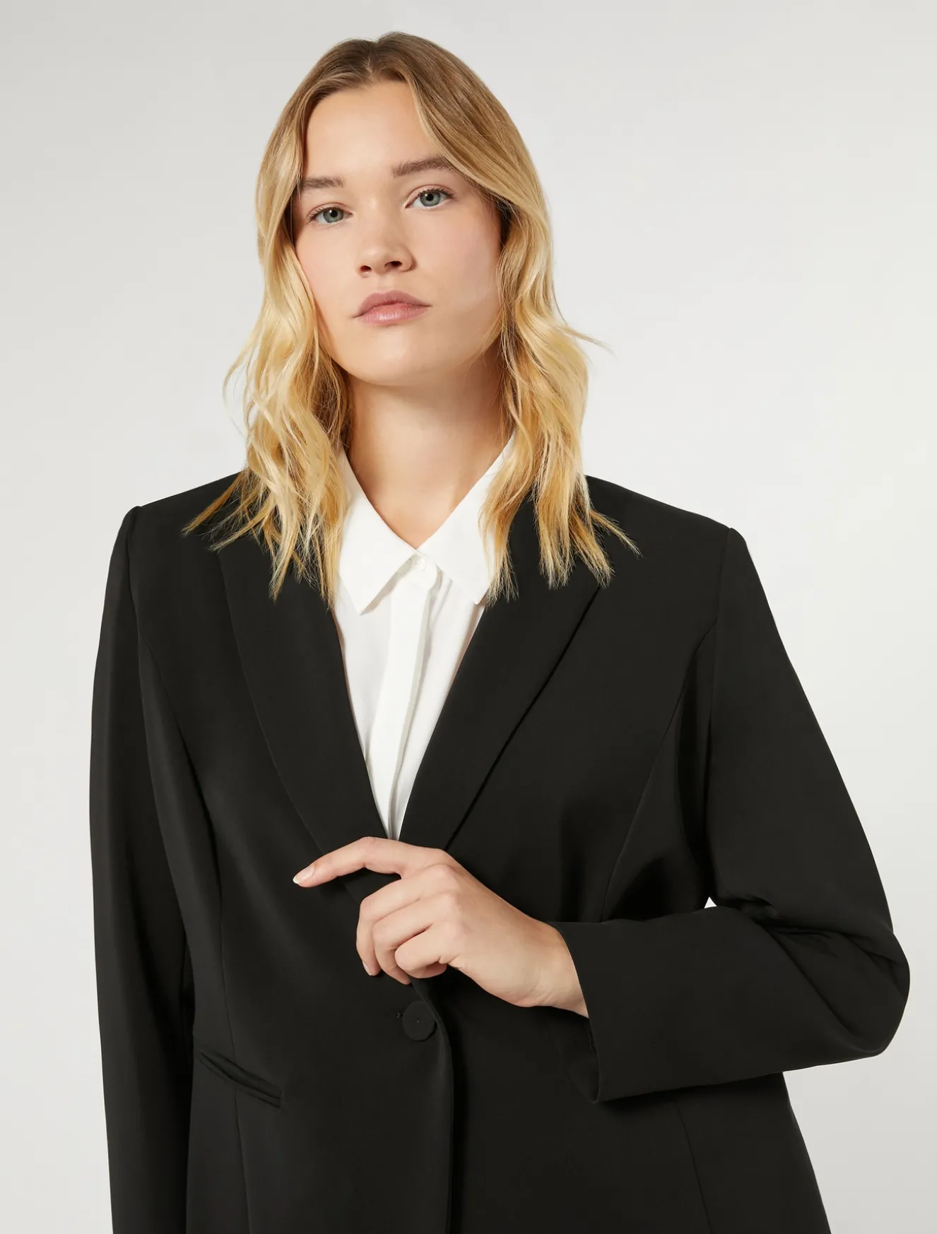 Sartoriale e versatile la giacca blazer in cady stretch con bottone ricoperto. Da indossare in look on e off duty.