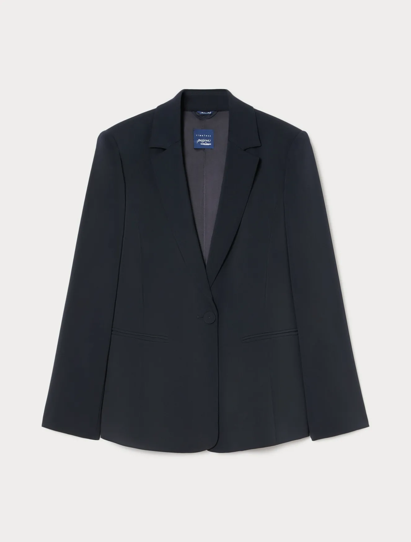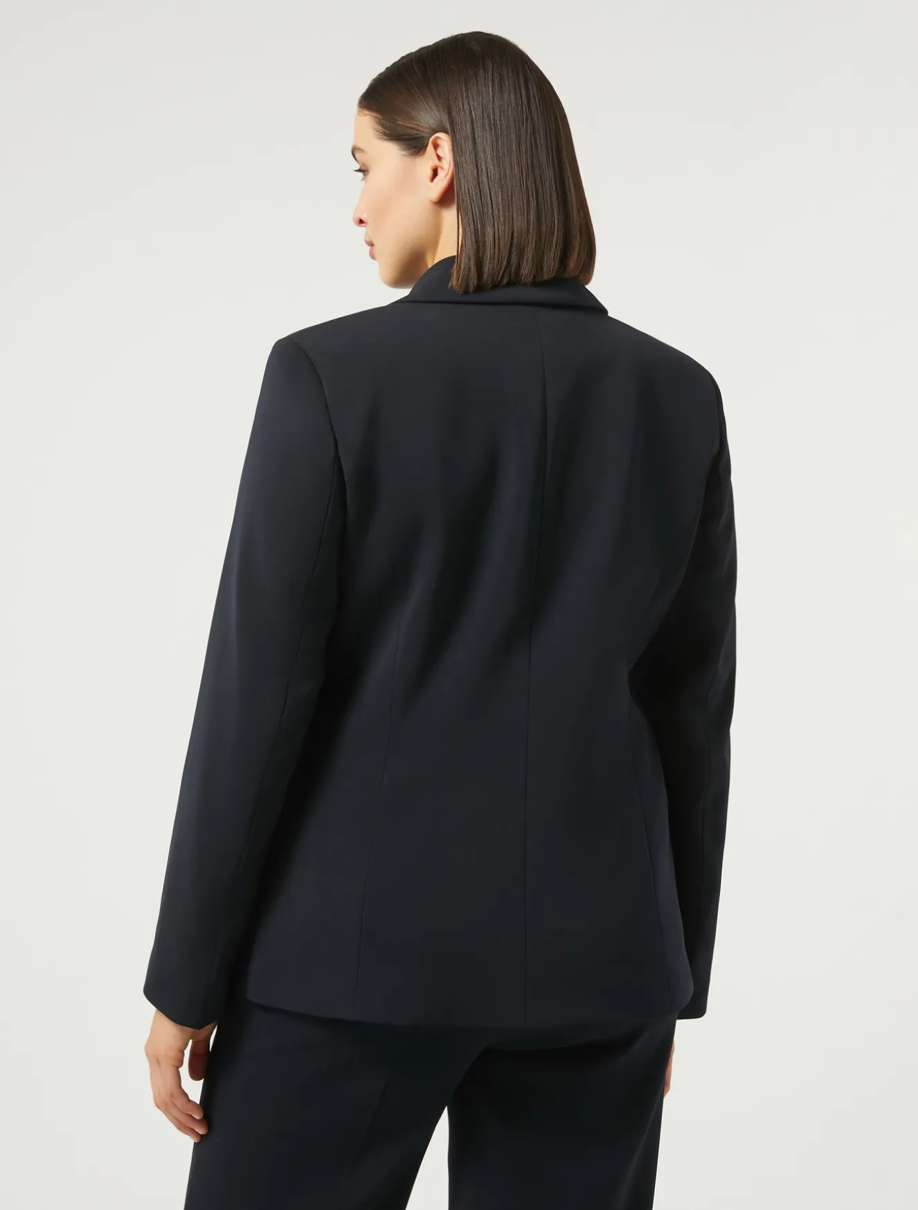 Sartoriale e versatile la giacca blazer in cady stretch con bottone ricoperto. Da indossare in look on e off duty.