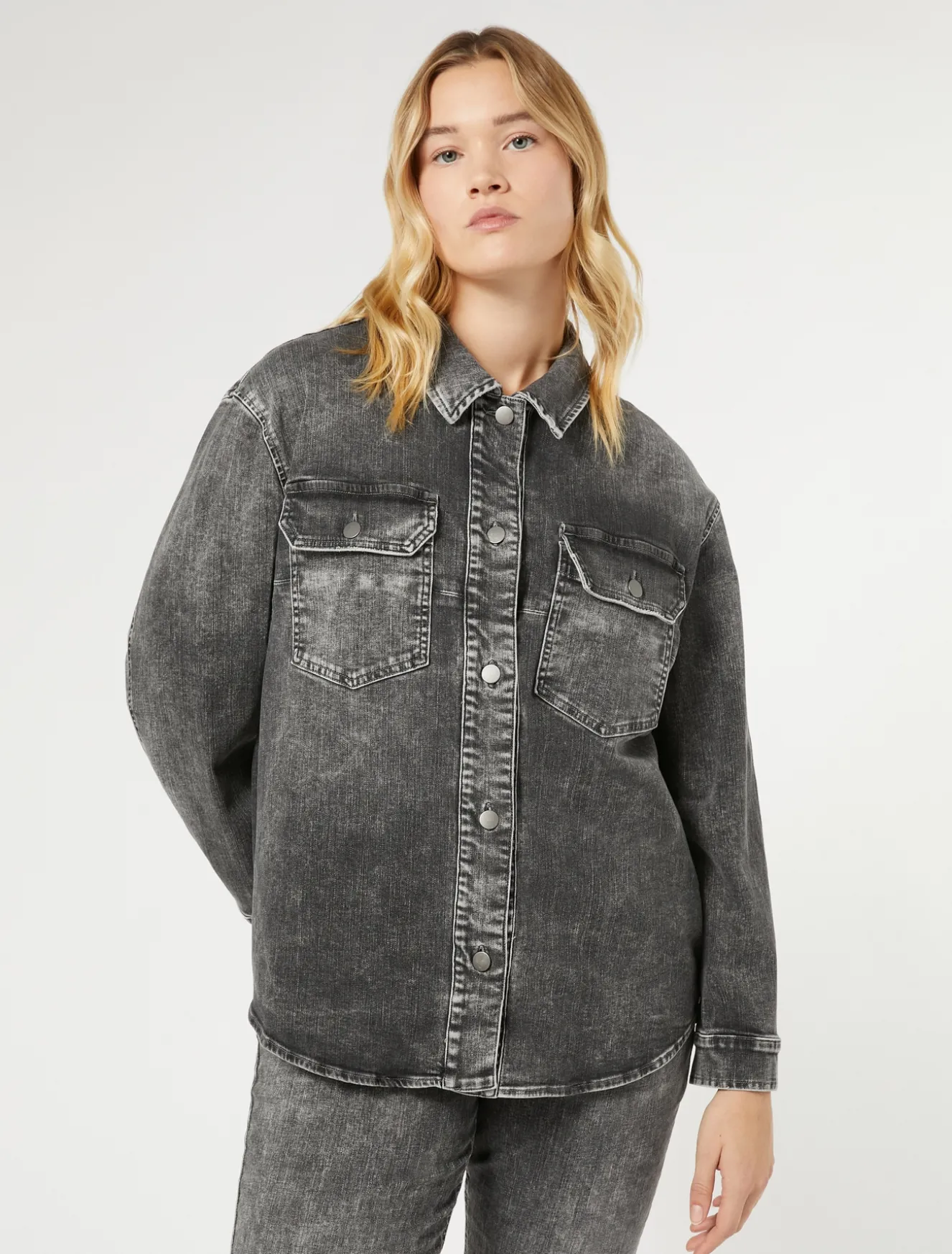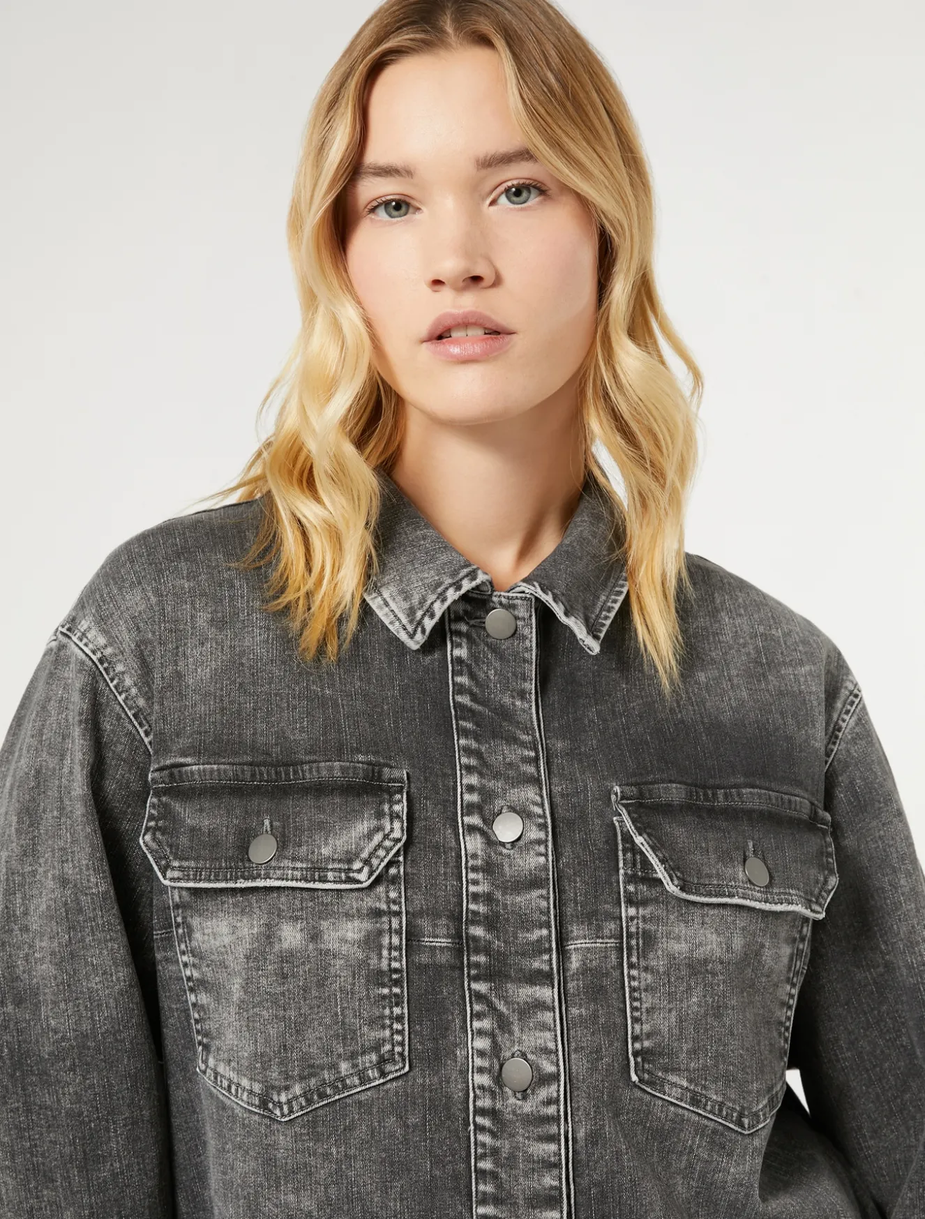 Ispirazioni workwear per la giacca in denim di cotone con lavaggio effetto marmorizzato. Taschini e chiusura con bottoni per un fit pratico e versatile.Il capo fa parte della collezione Persona by Marina Rinaldi.