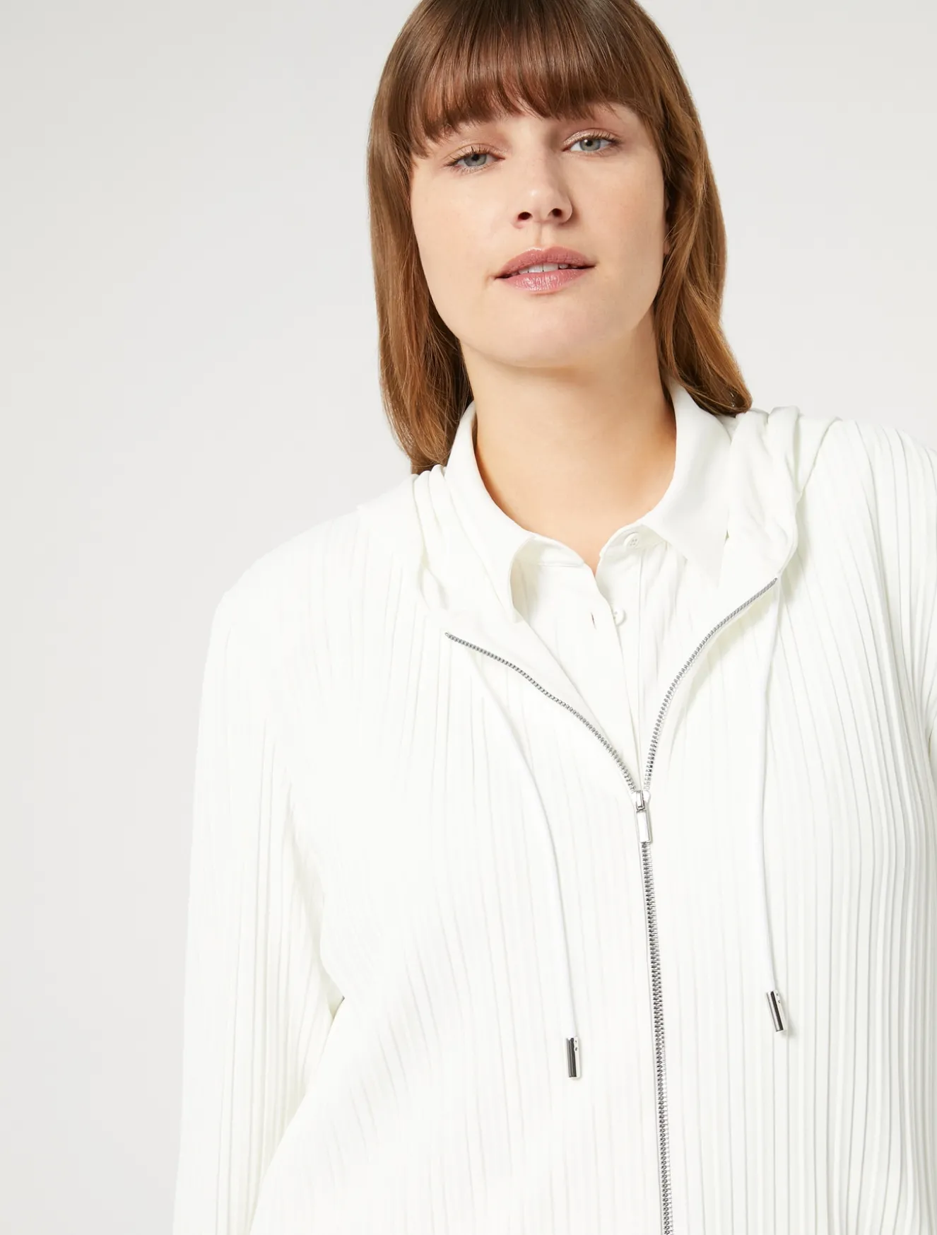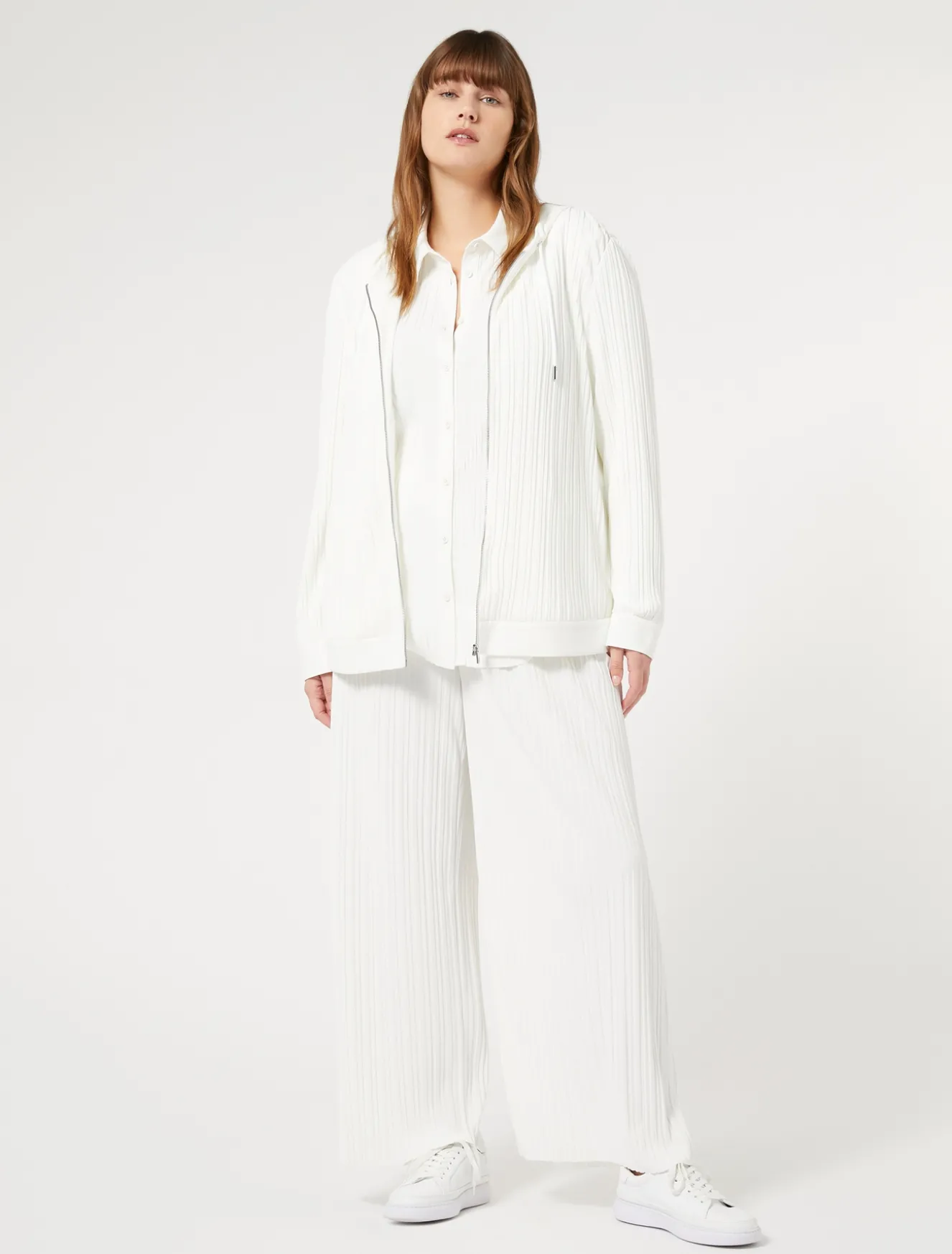 Morbido jersey plissé per la giacca rifinita in jersey unito. La puoi indossare anche in abbinamento ai pantaloni in coordinato.Il capo fa parte della collezione Voyage Relax.