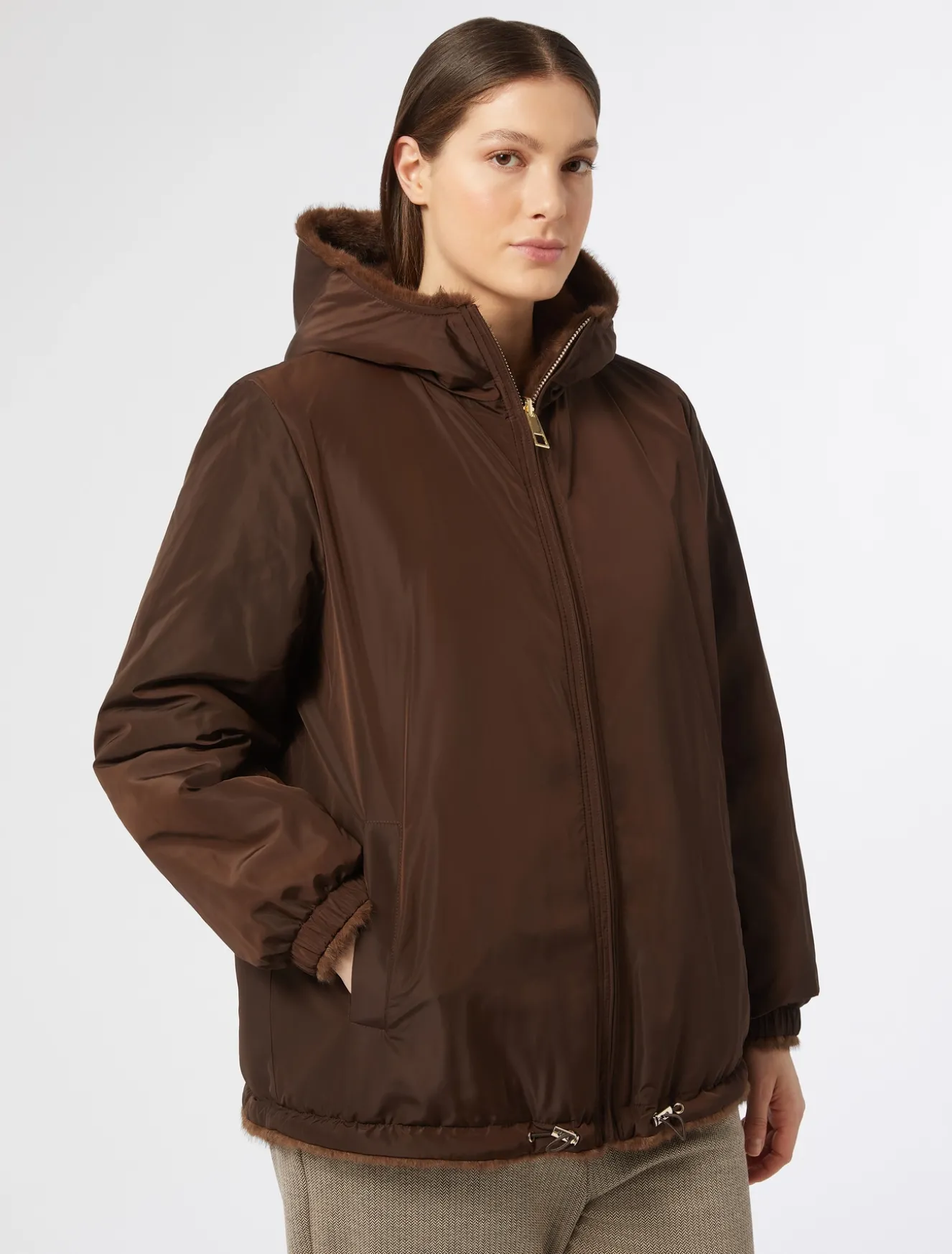 Indossa dal lato che preferisci questo giaccone reversibile in tessuto dalla texture soffice da un lato e in taffetà dall’altro. Attitudine trasversale per completare una miriade di look.Il capo fa parte della collezione Marina Sport.