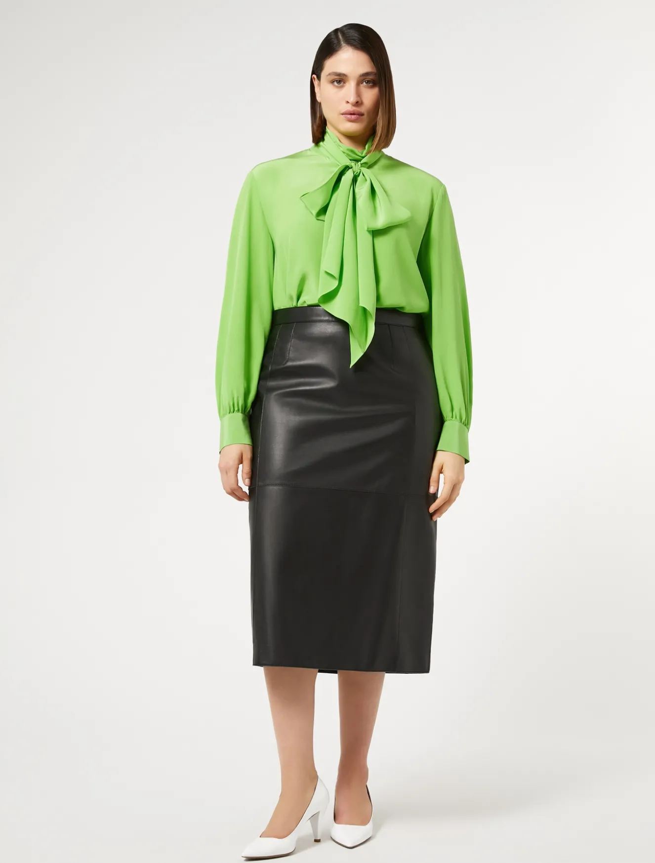 Eleva in un attimo lo stile questa gonna a tubino in pelle con tagli ergonomici davanti e dietro. Base perfetta di look attuali.Il capo fa parte della main collection Marina Rinaldi.