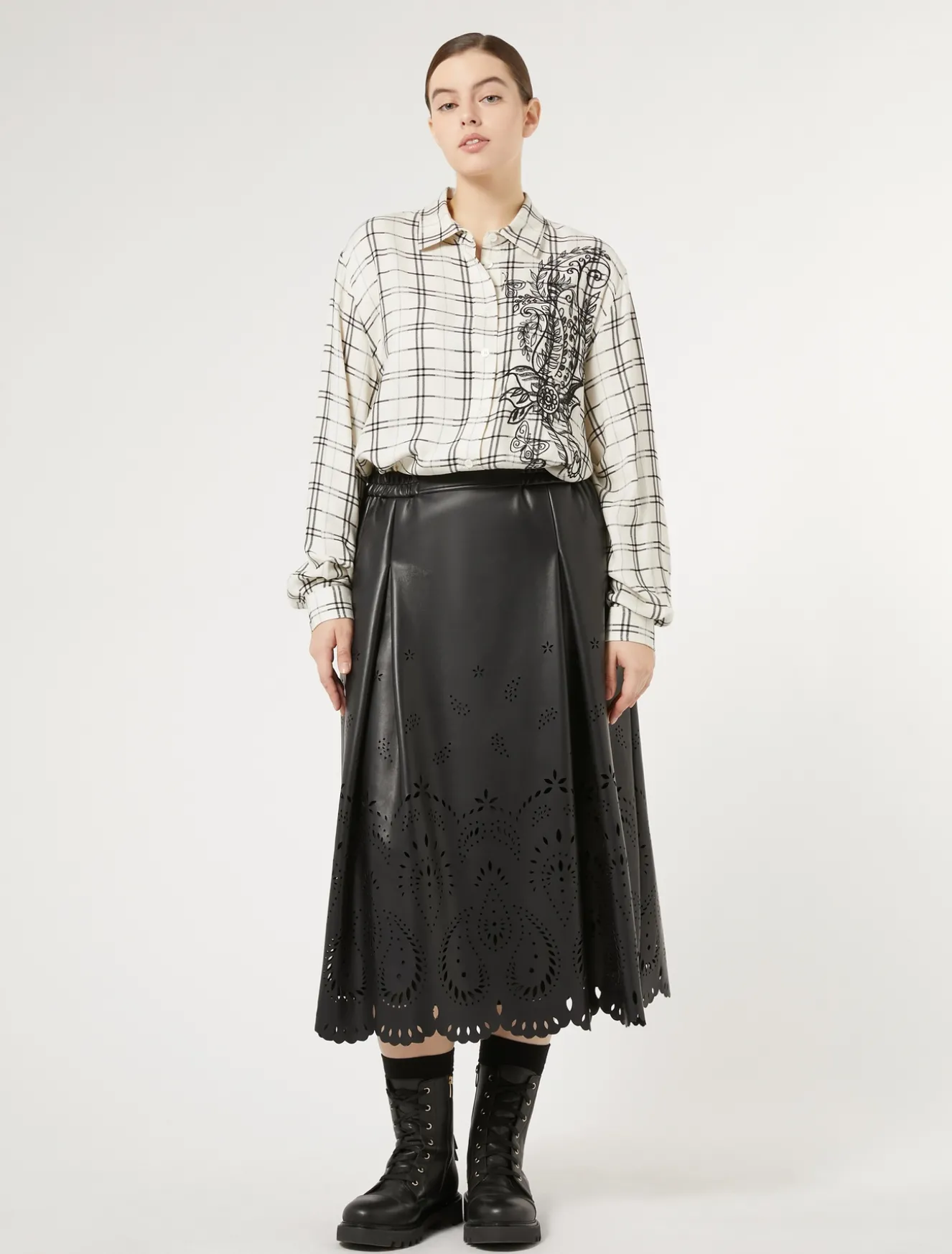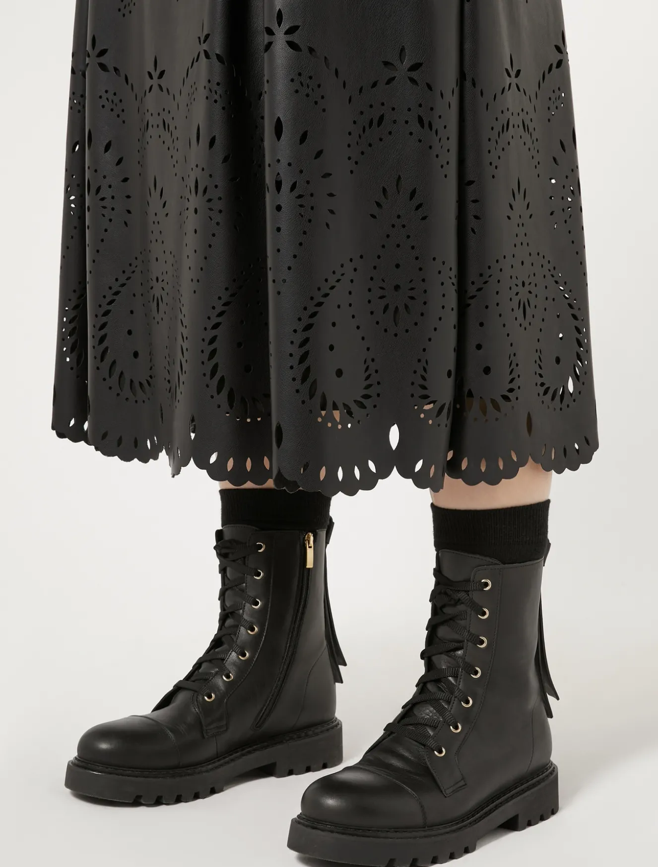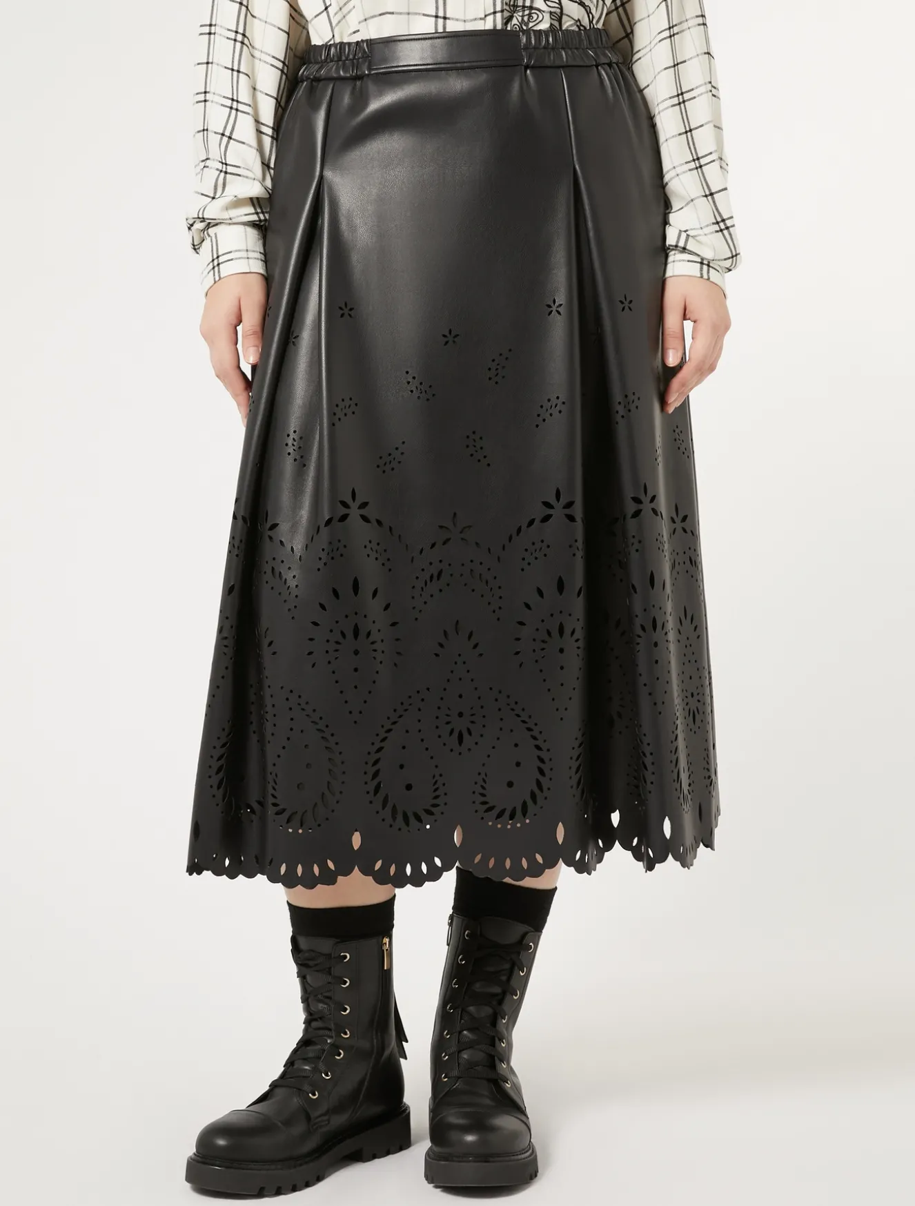 Ricercata lavorazione al laser in capo effetto sangallo piazzata per la gonna midi, dalla linea svasata. Per dare carattere allo stile.Il capo fa parte della collezione Marina Sport.