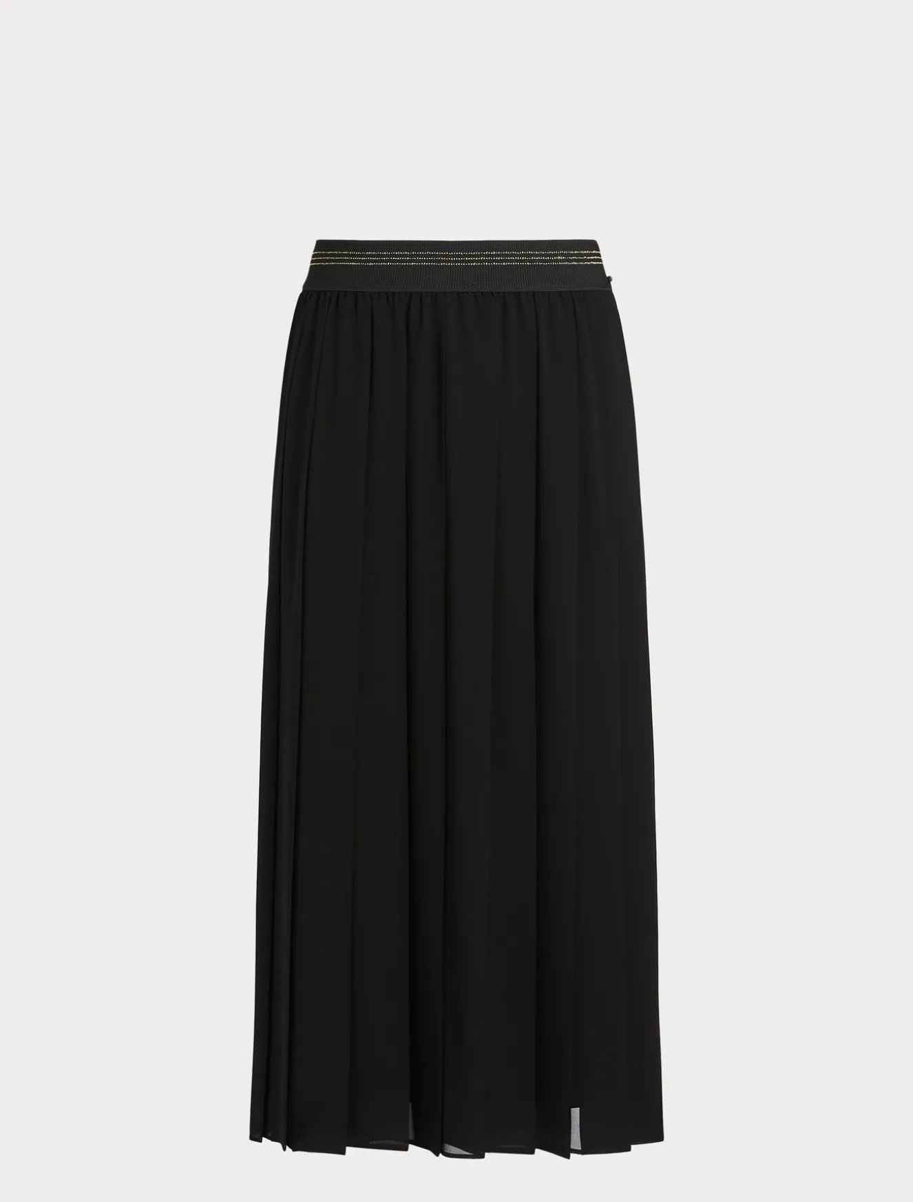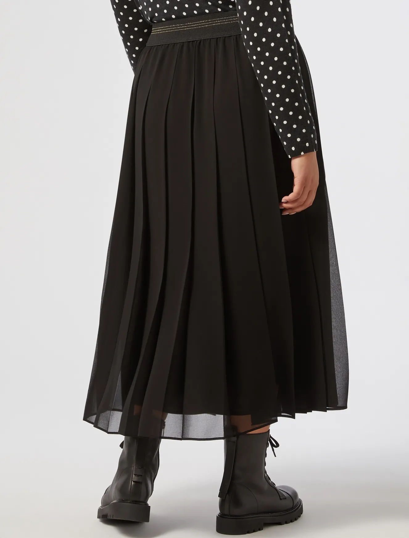 Attitudine femminile per la gonna lunga in georgette a pieghe. Perfetta per dare movimento al tuo stile in un attimo.Il capo fa parte della collezione Marina Sport.