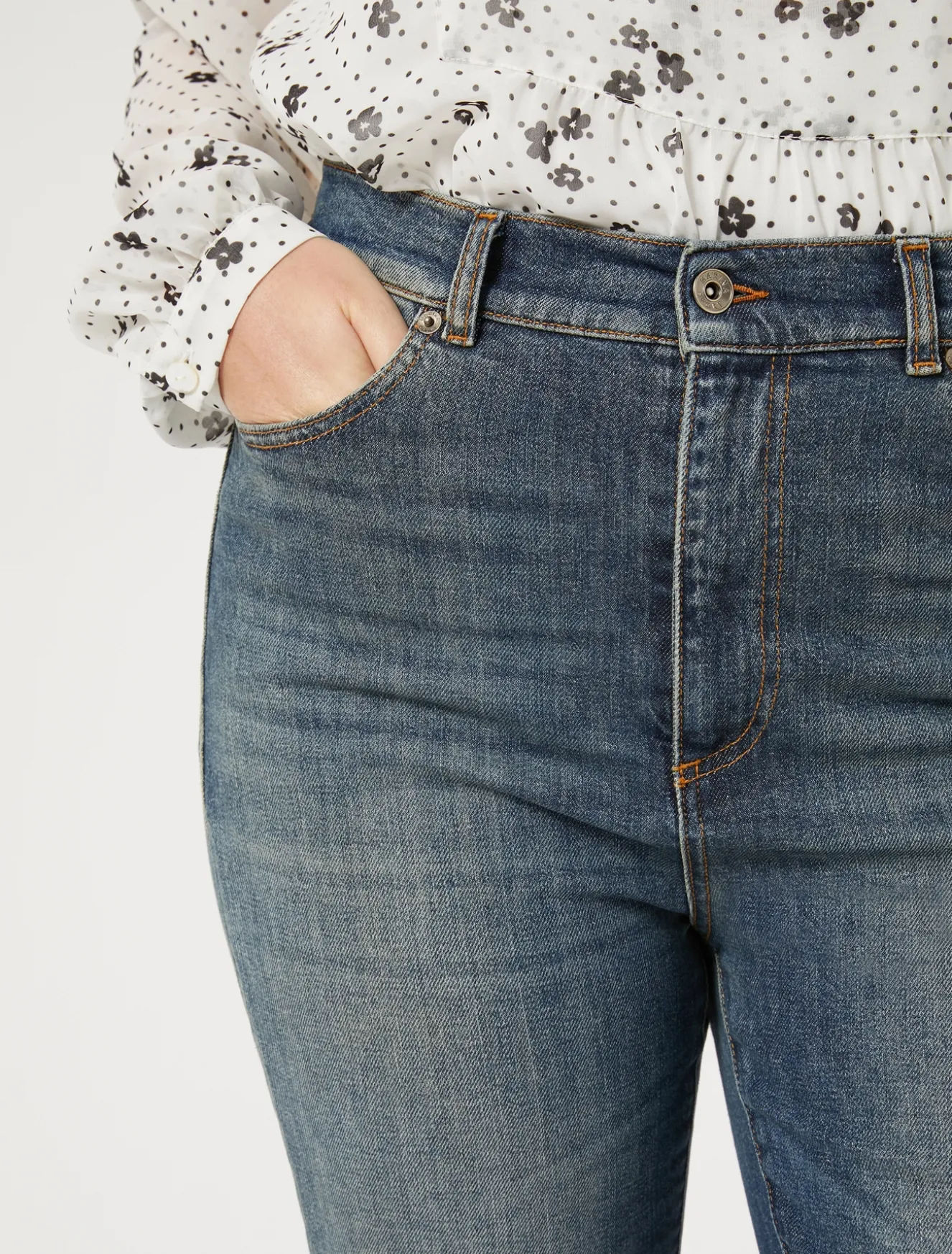 Attitudine sartoriale per i jeans flare in denim stretch lavato in capo, trattamento vintage. Per elevare lo stile in un attimo.Il capo fa parte della collezione Marina Sport.