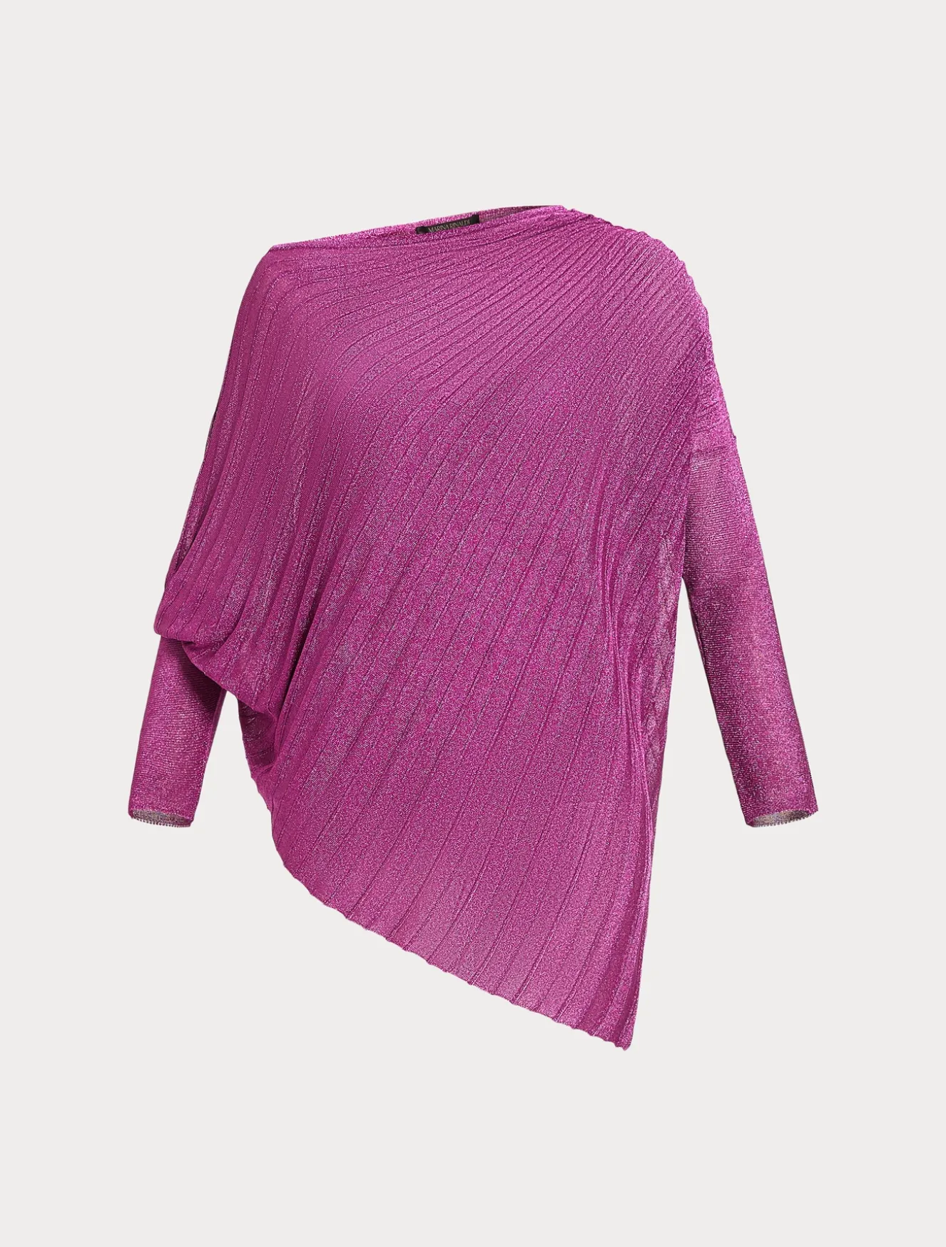 Design asimmetrico a coste con nervature a rilievo per la maglia in misto viscosa stretch. Perfetta per completare lo stile con eleganza décontracté.Il capo fa parte della collezione Elegante.