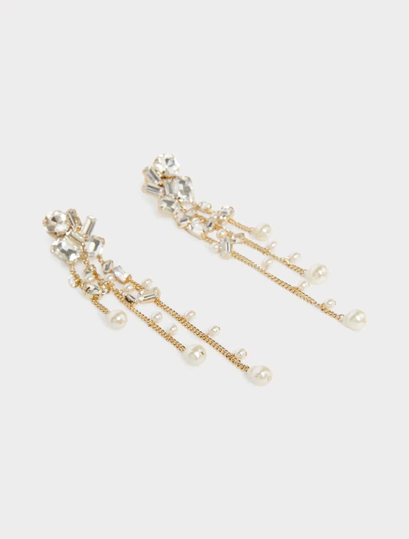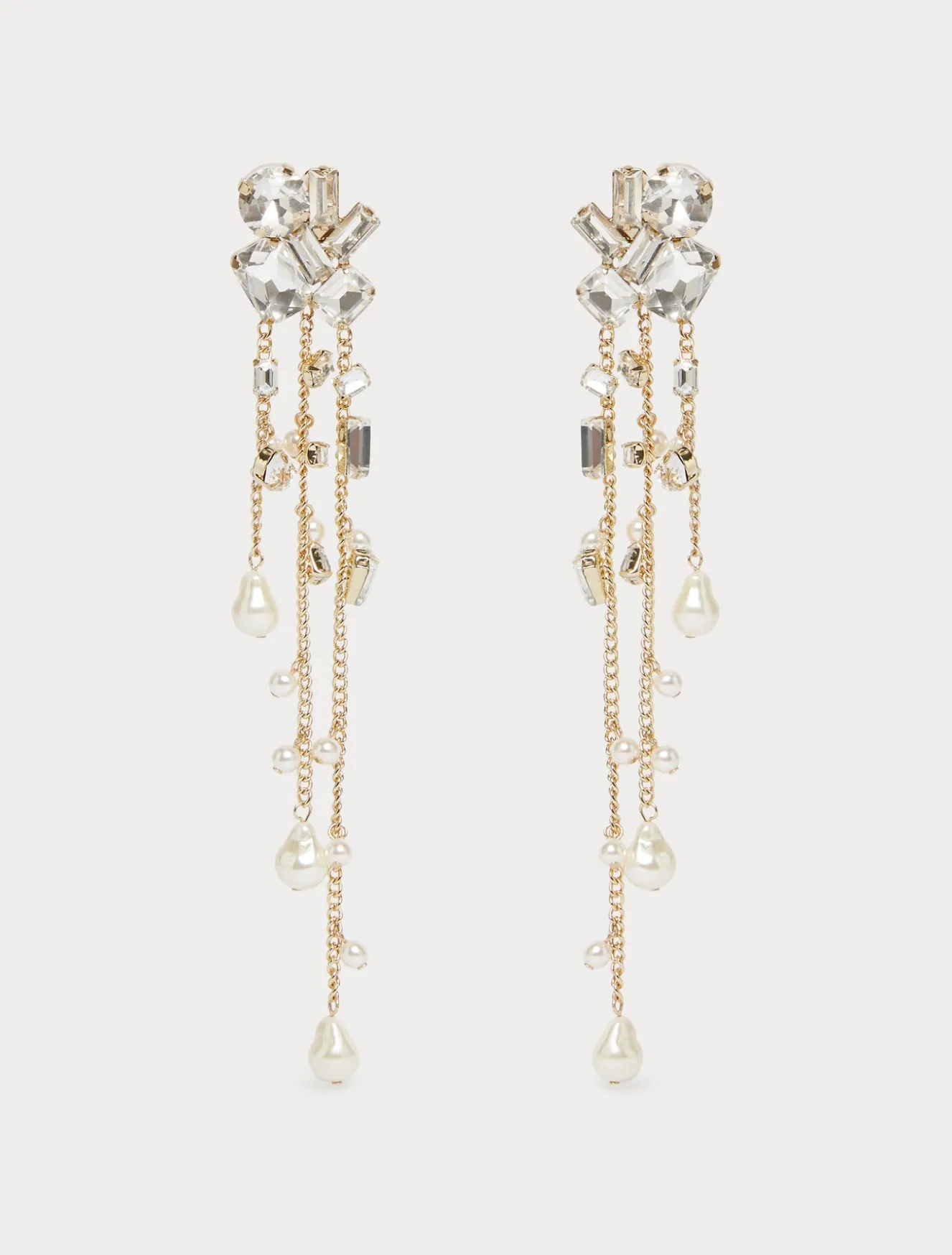 Illumina il tuo stile con gli orecchini chandelier con cristalli e perle. Perfetti per completare i look eleganti e dare una nota glamour ai look daily.Il capo fa parte della main collection Marina Rinaldi.