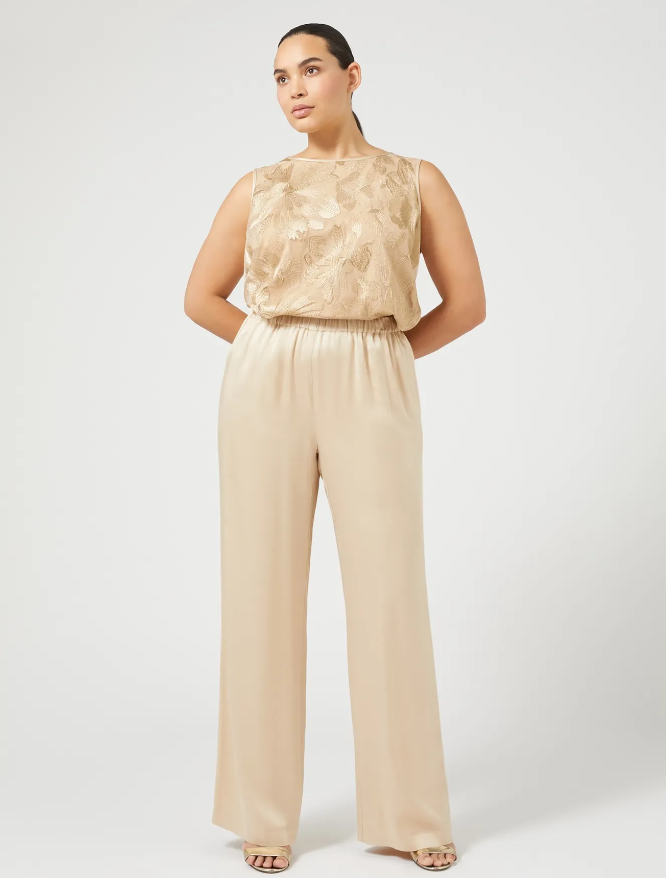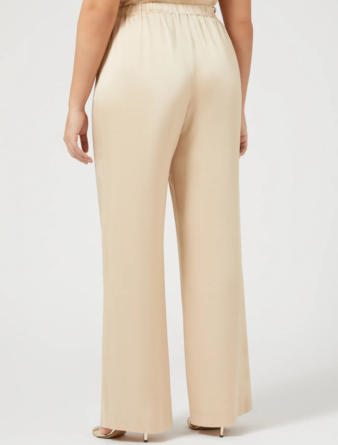 Look luminoso e prezioso con i pantaloni in envers satin lucido, dalla linea ampia con elastico in vita per un fit morbido e confortevole. Da abbinare al top in coordinato. Il capo fa parte della collezione Elegante.