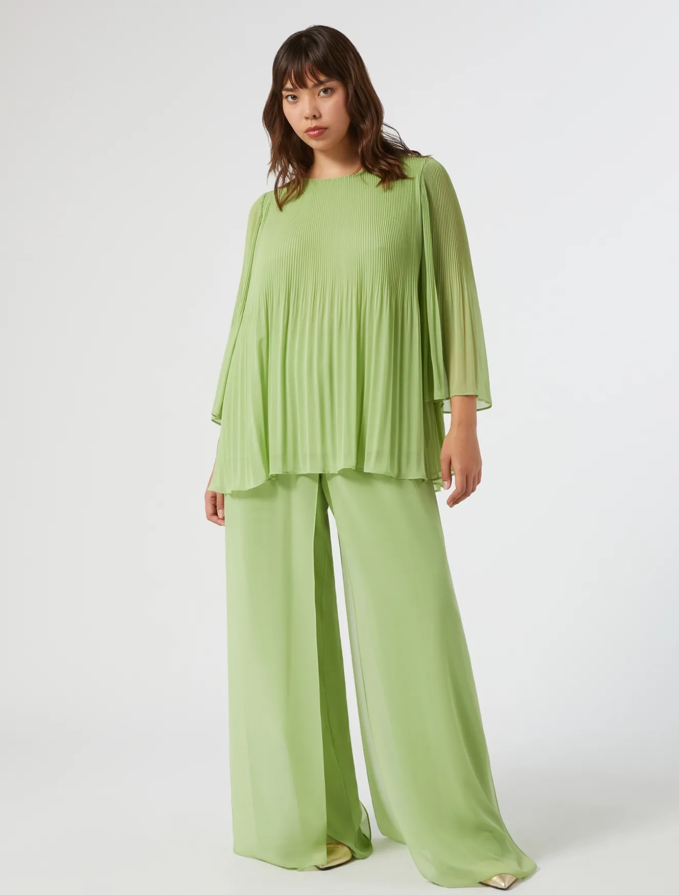 Design ricercato per i pantaloni in georgette dalla linea dritta con spacchi laterali ai fianchi. Base perfetta per una miriade di look.