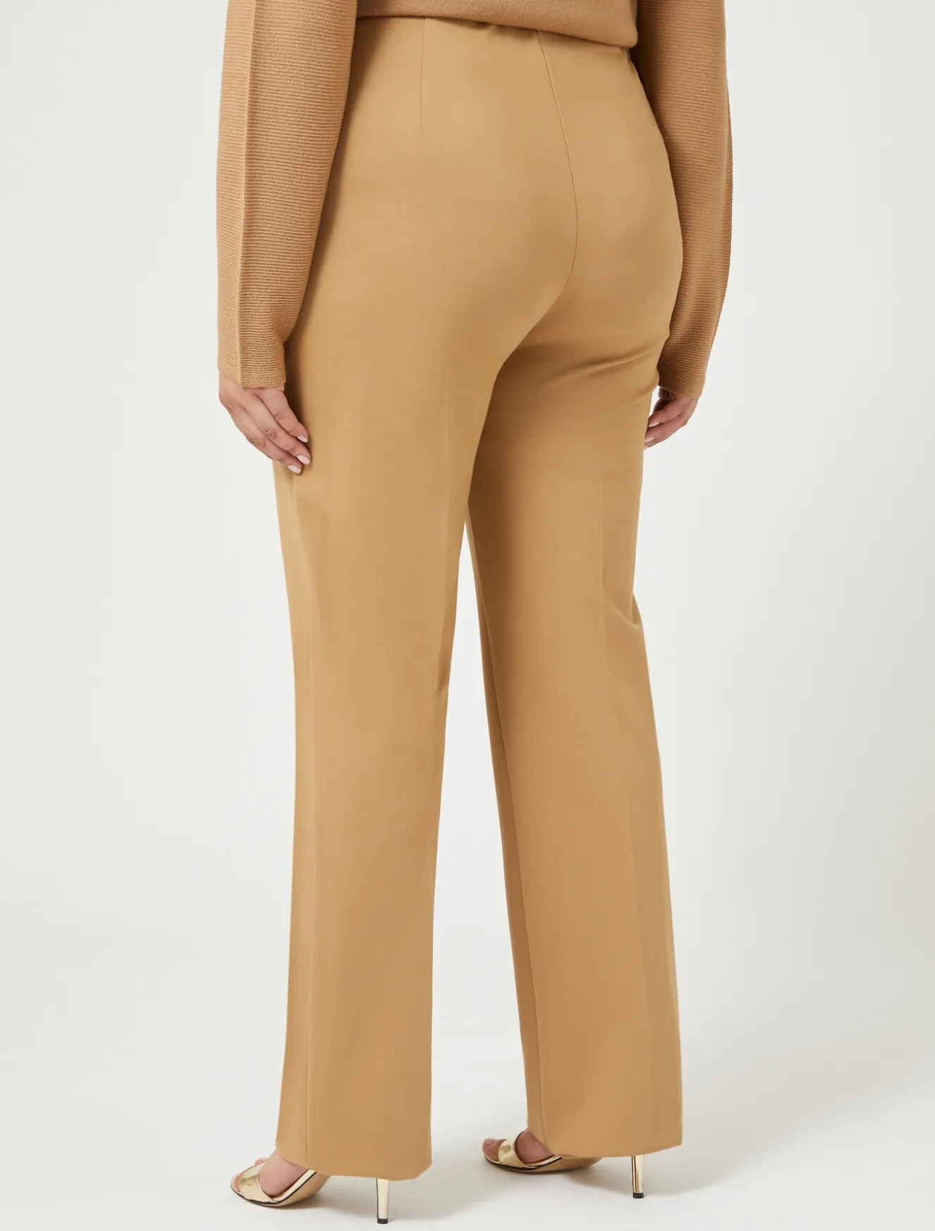 Eleganti e confortevoli i pantaloni flare in jersey bistretch con design essenziale e pulito con elastico interno nascosto. Saranno la base perfetta per una miriade di outfit, anche in abbinamento al blazer in coordinato.Il capo fa parte della main collection Marina Rinaldi.