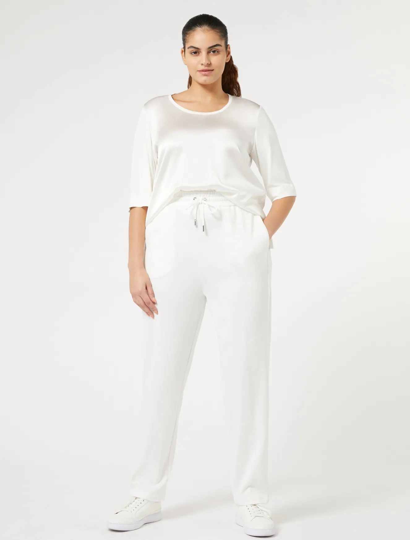 Sono decorati da un motivo di piping sui fianchi i pantaloni in jersey interlock di cotone e nylon. Li puoi indossare in abbinamento alla felpa in coordinato. Il capo fa parte della collezione Voyage Relax.
