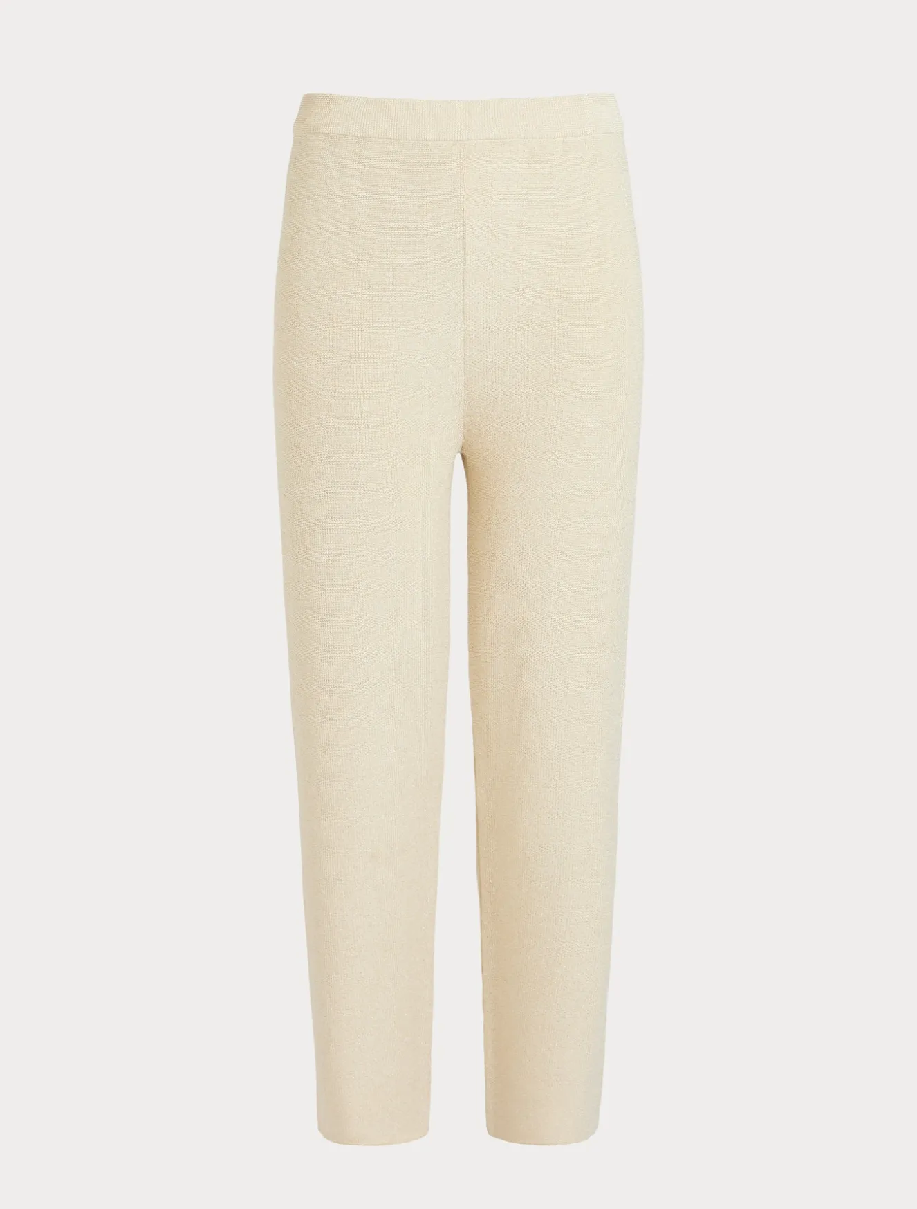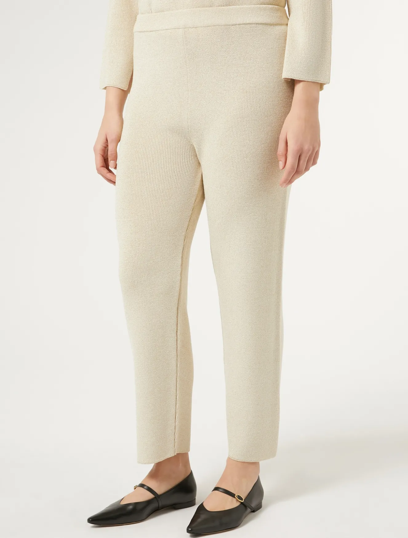 Lavorazione in punto pannocchia per i pantaloni in maglia, dalla linea dritta. Li puoi indossare in abbinamento alla maglia in coordinato. Il capo fa parte della collezione Voyage.