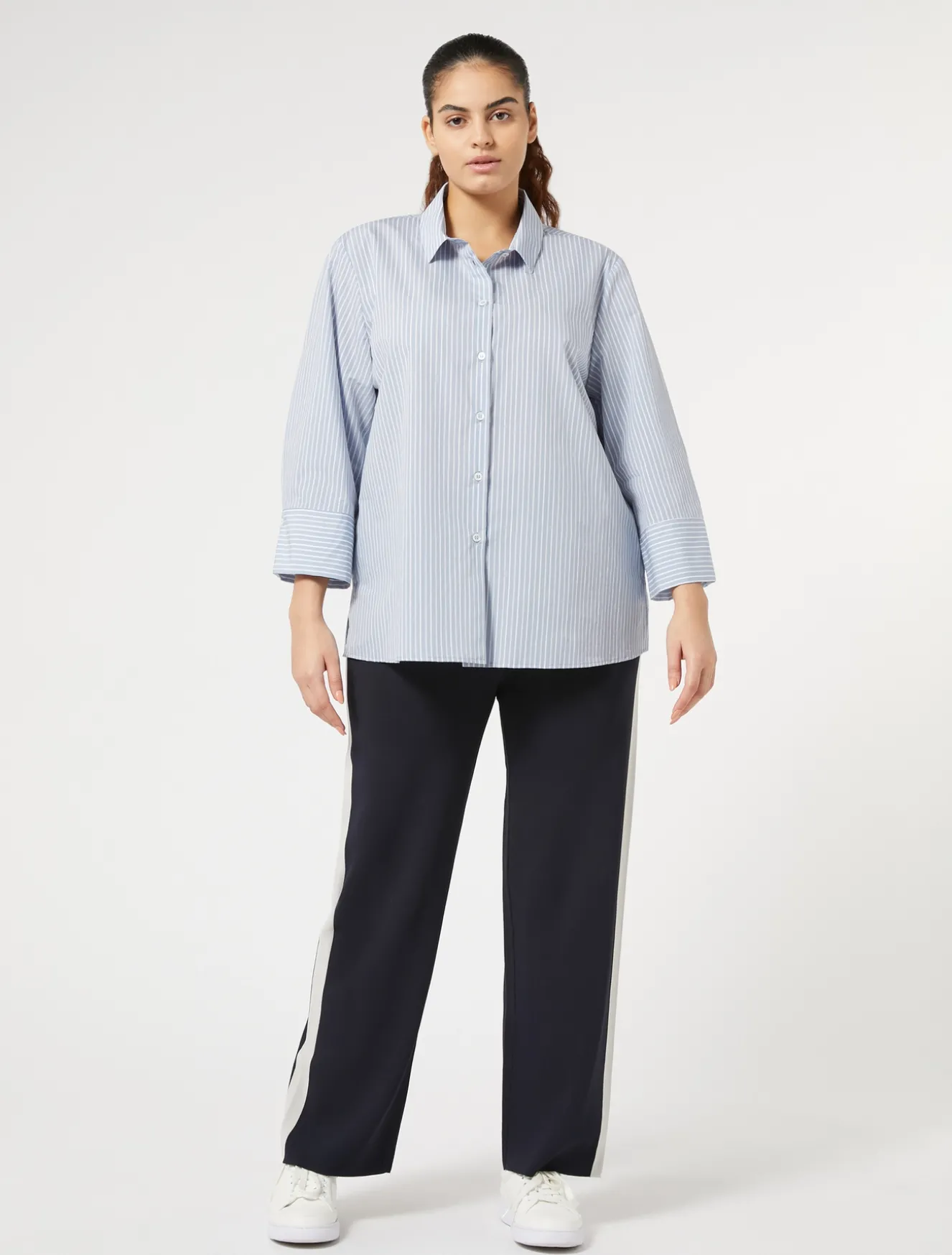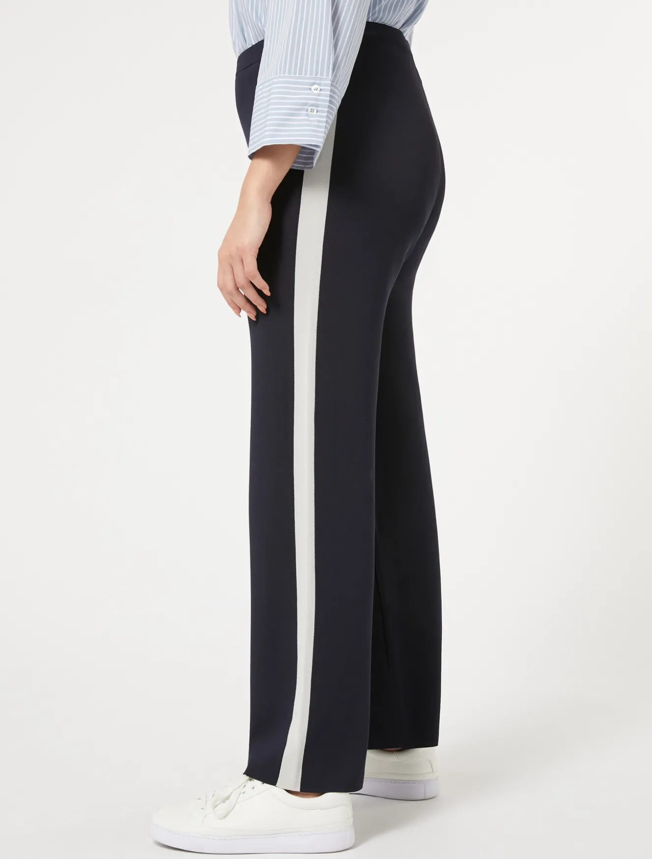 Sono decorati da un motivo di intarsio in colore a contrasto sui fianchi i pantaloni in viscosa stretch lavorata a punto stoffa. Li puoi indossare in abbinamento alla maglia in coordinato. Il capo fa parte della collezione Voyage.
