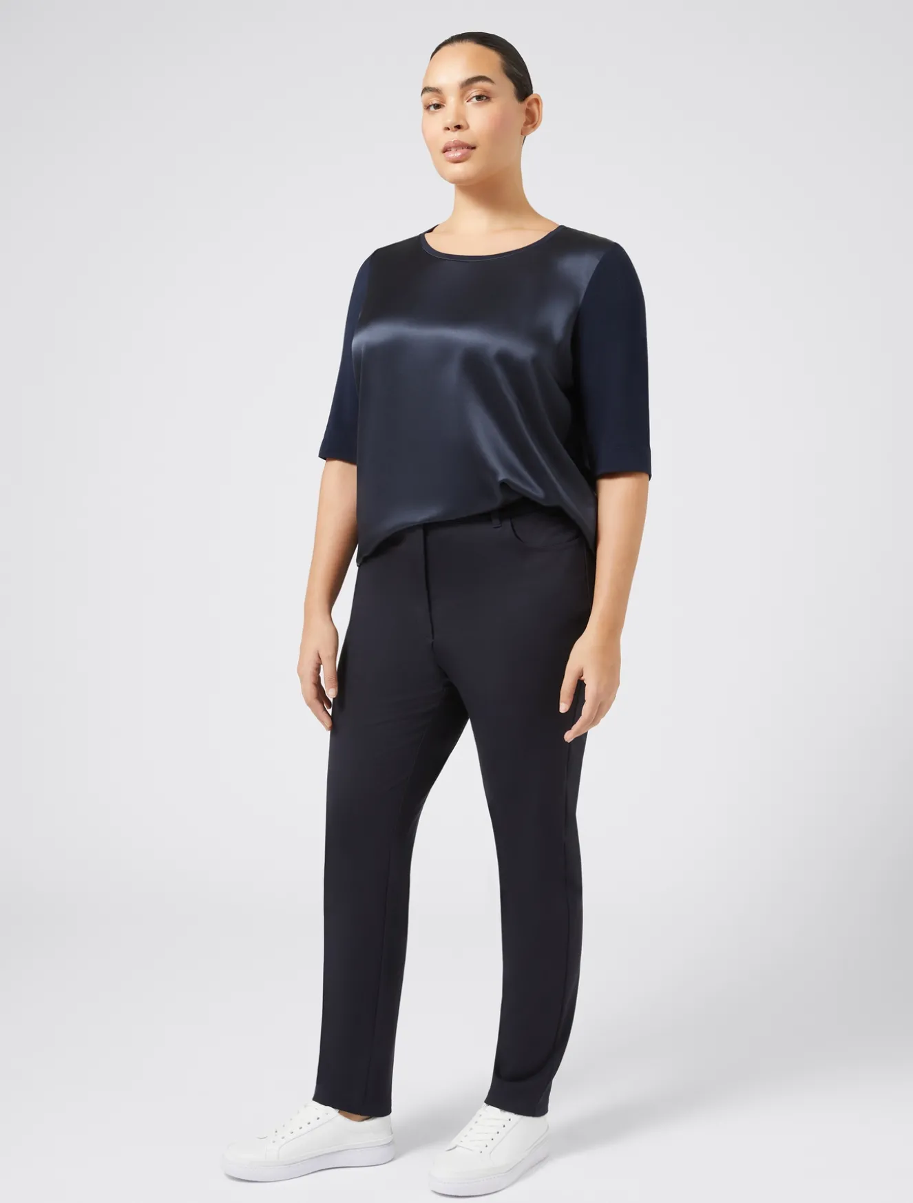 Fascino timeless e confortevole per i pantaloni in jersey punto Milano, dalla linea slim. Un modello chiave da abbinare con facilità a tutto il guardaroba.