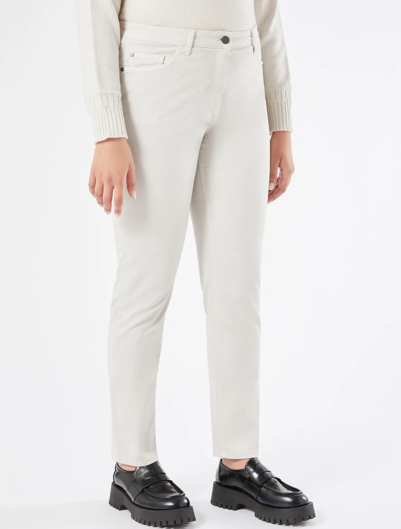 Design cinque tasche per i pantaloni in raso di cotone stretch smerigliato dalla linea shaping con tagli sul retro che valorizzano la silhouette.Il capo fa parte della collezione Persona by Marina Rinaldi.