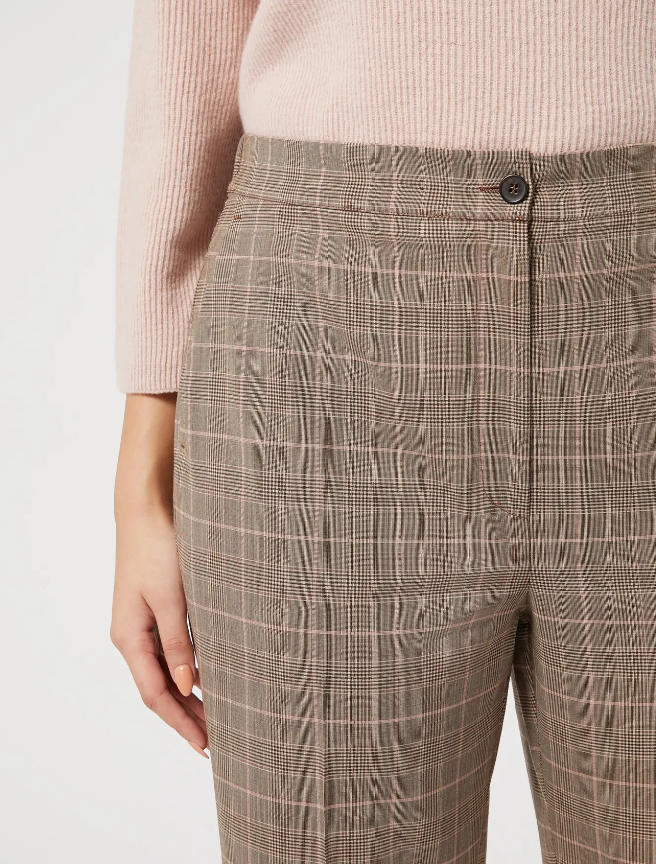 Fantasia delicata per i pantaloni in tela di lana tinto in filo con linea dritta, lunghezza alla caviglia e piega stirata. Perfetti per dare movimento allo stile.Il capo fa parte della collezione Voyage.