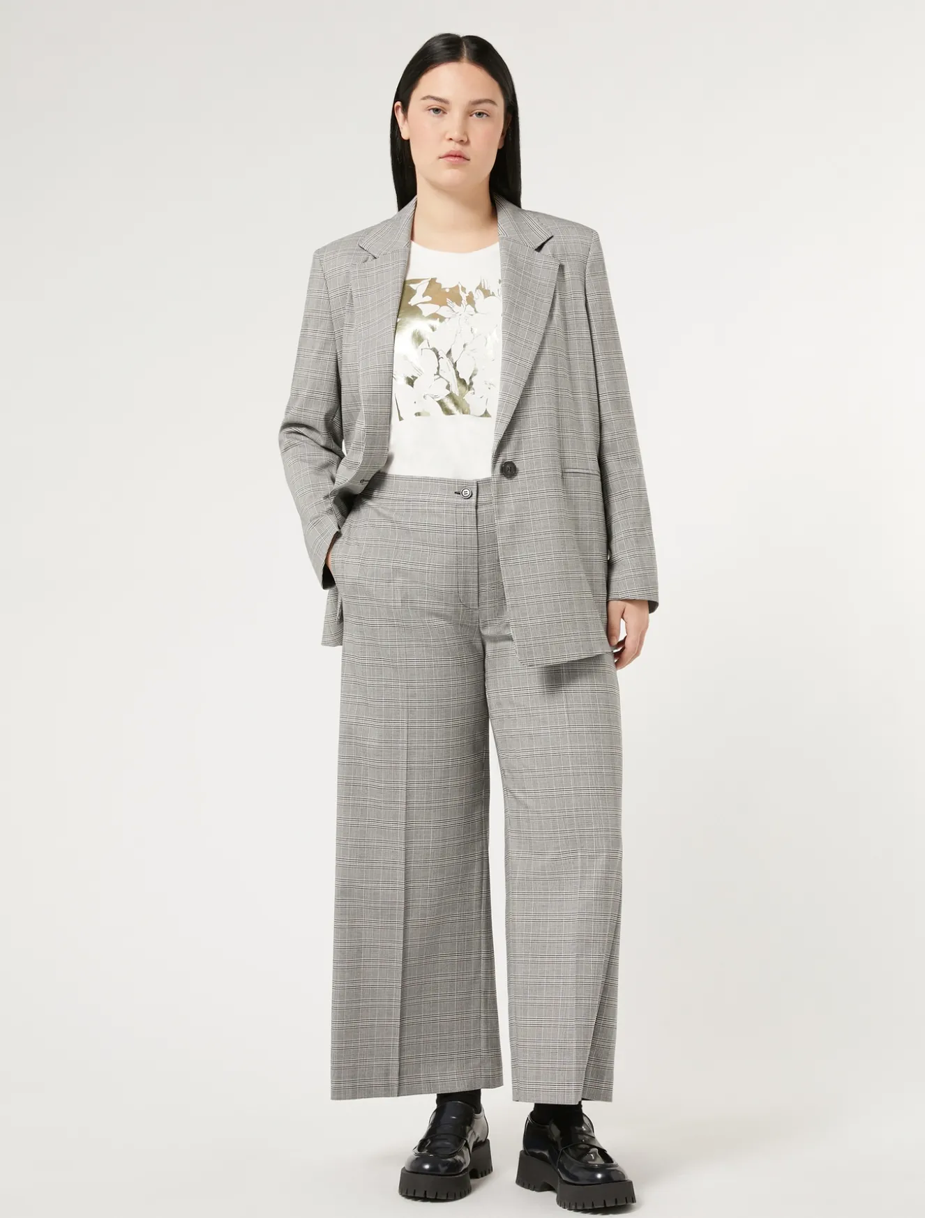 Volumi contemporanei per i pantaloni in tela di viscosa con taglio crop. Il dettaglio di piega stirata al centro definisce la struttura del capo e slancia la silhouette.Il capo fa parte della collezione Persona by Marina Rinaldi.