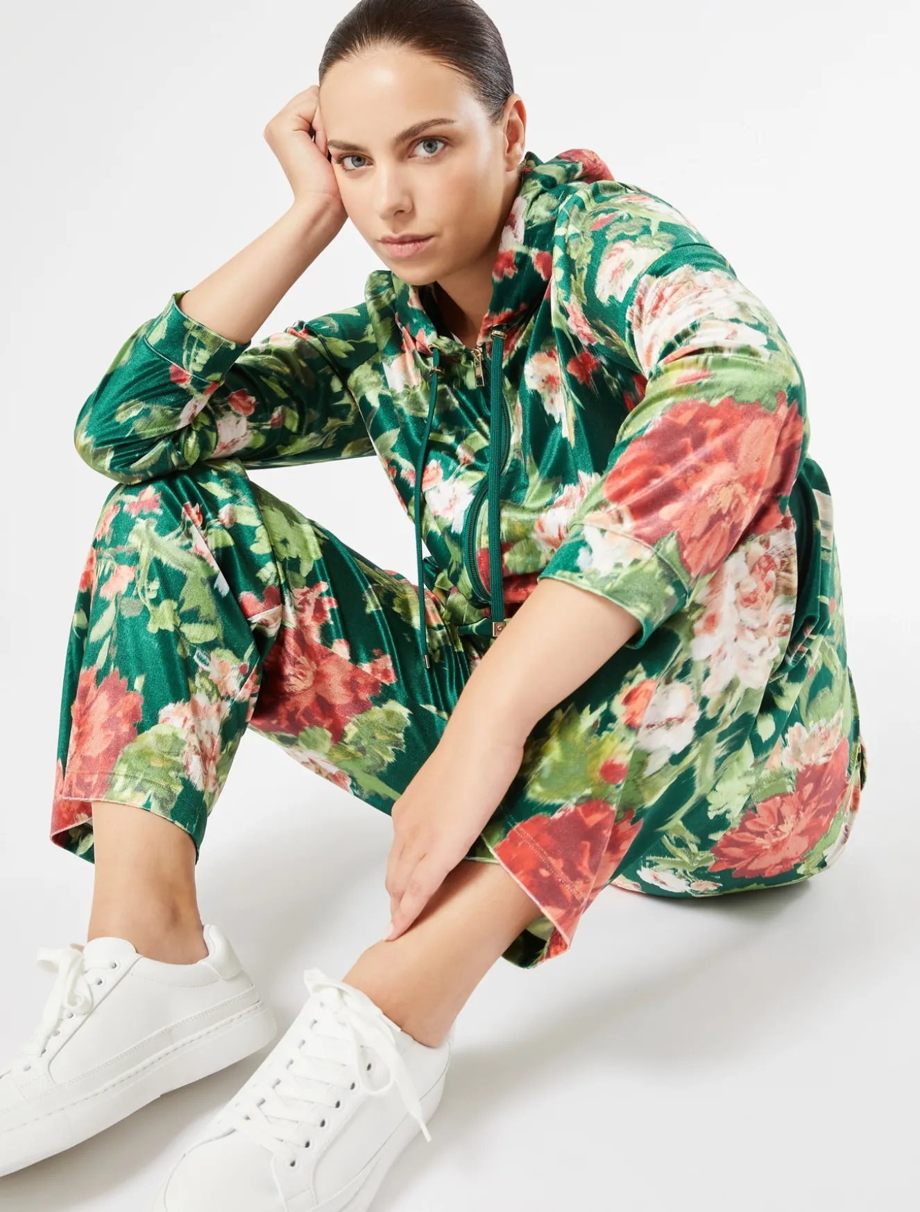 Rendi unici i tuoi look easywear con i pantaloni full length in velluto con stampa esclusiva a fiori. Li puoi indossare in abbinamento alla felpa in coordinato.Il capo fa parte della collezione Marina Sport.