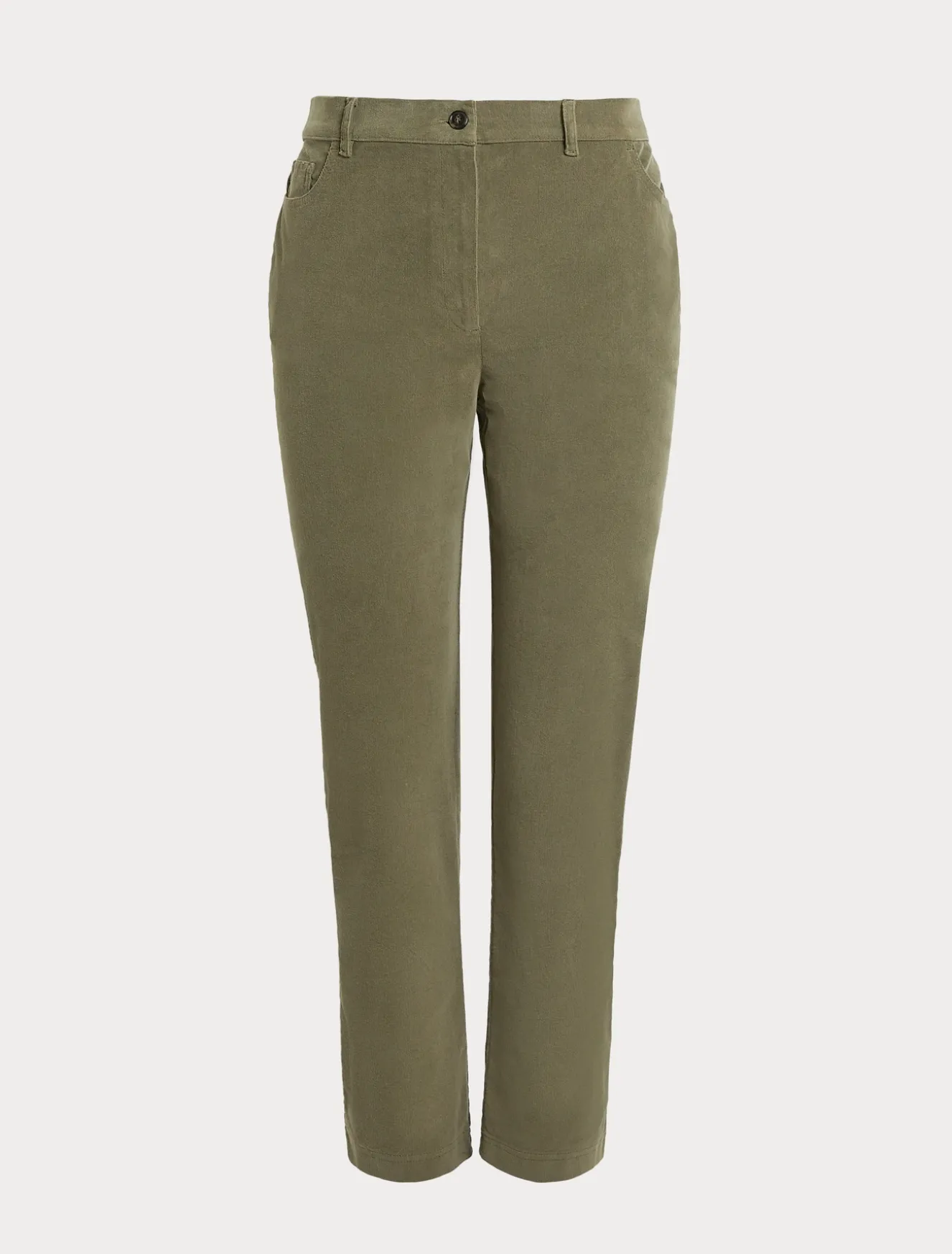 Texture da accarezzare per i pantaloni in velluto di cotone con design cinque tasche dallo stile senza tempo. Chiusura sul davanti. Il capo fa parte della collezione Persona by Marina Rinaldi.