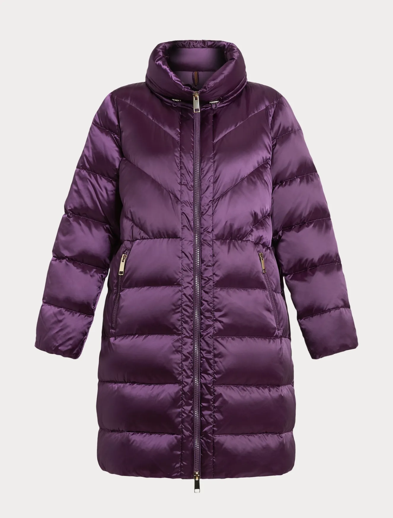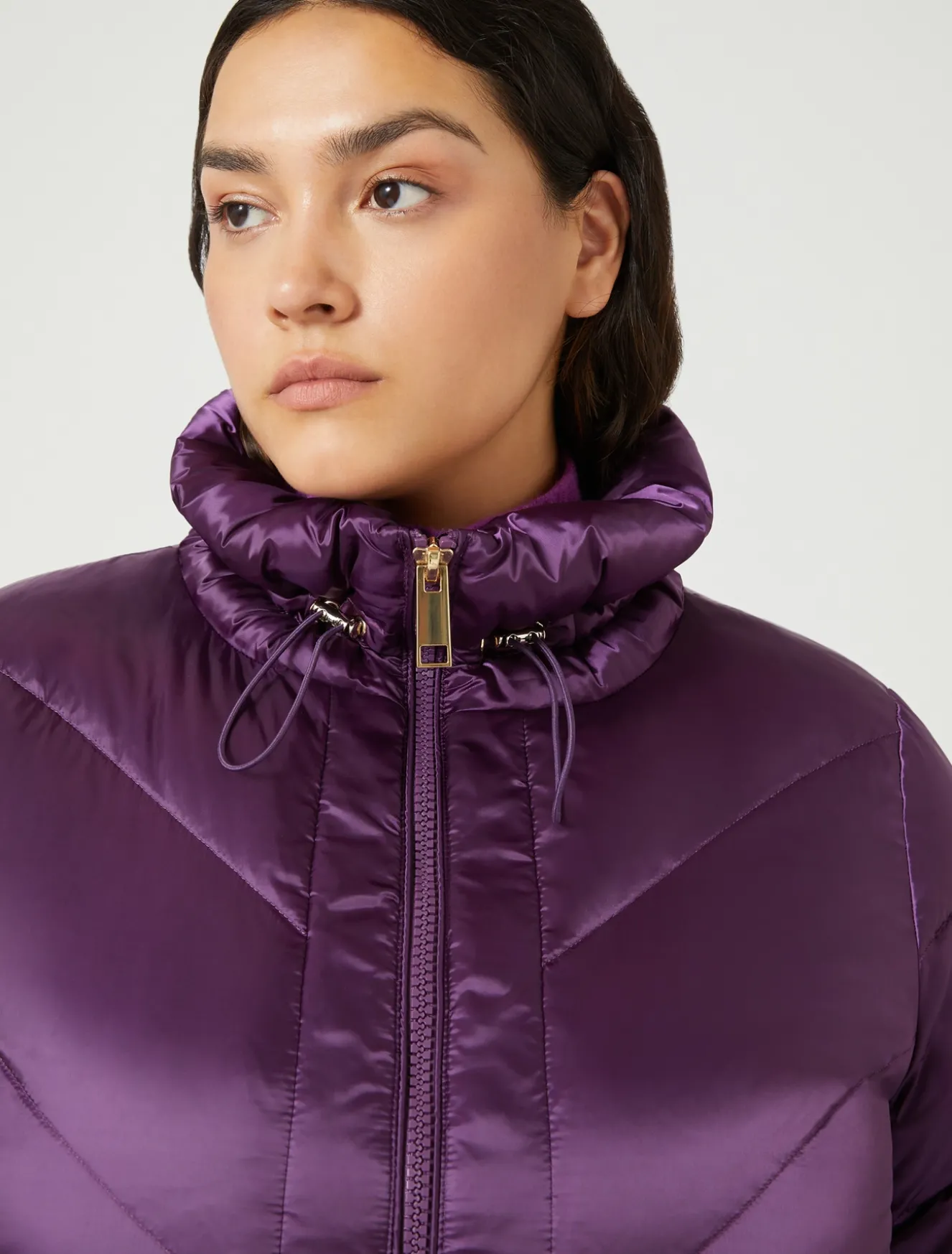 Imbottitura in vera piuma per il piumino in tela di nylon antigoccia, con linea svasata e taglio e coulisse interna in vita. Confortevole e pregiato, da abbinare a tutto il guardaroba.Il capo fa parte della collezione Marina Sport.