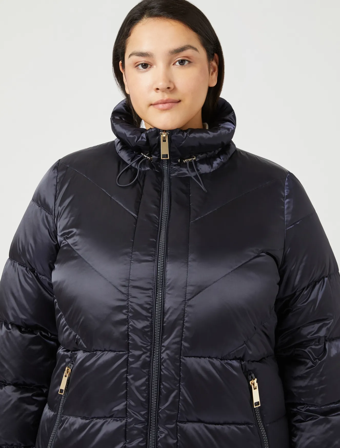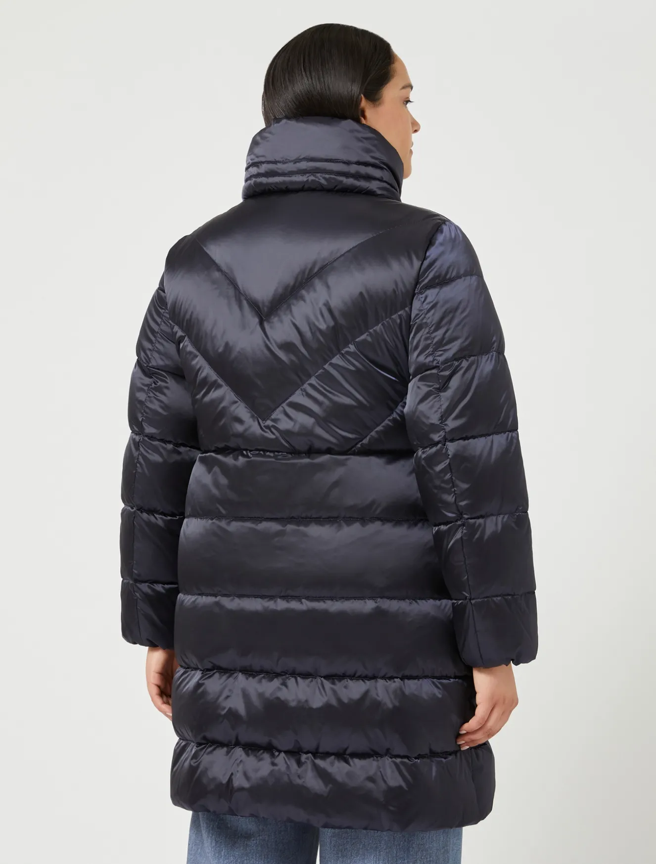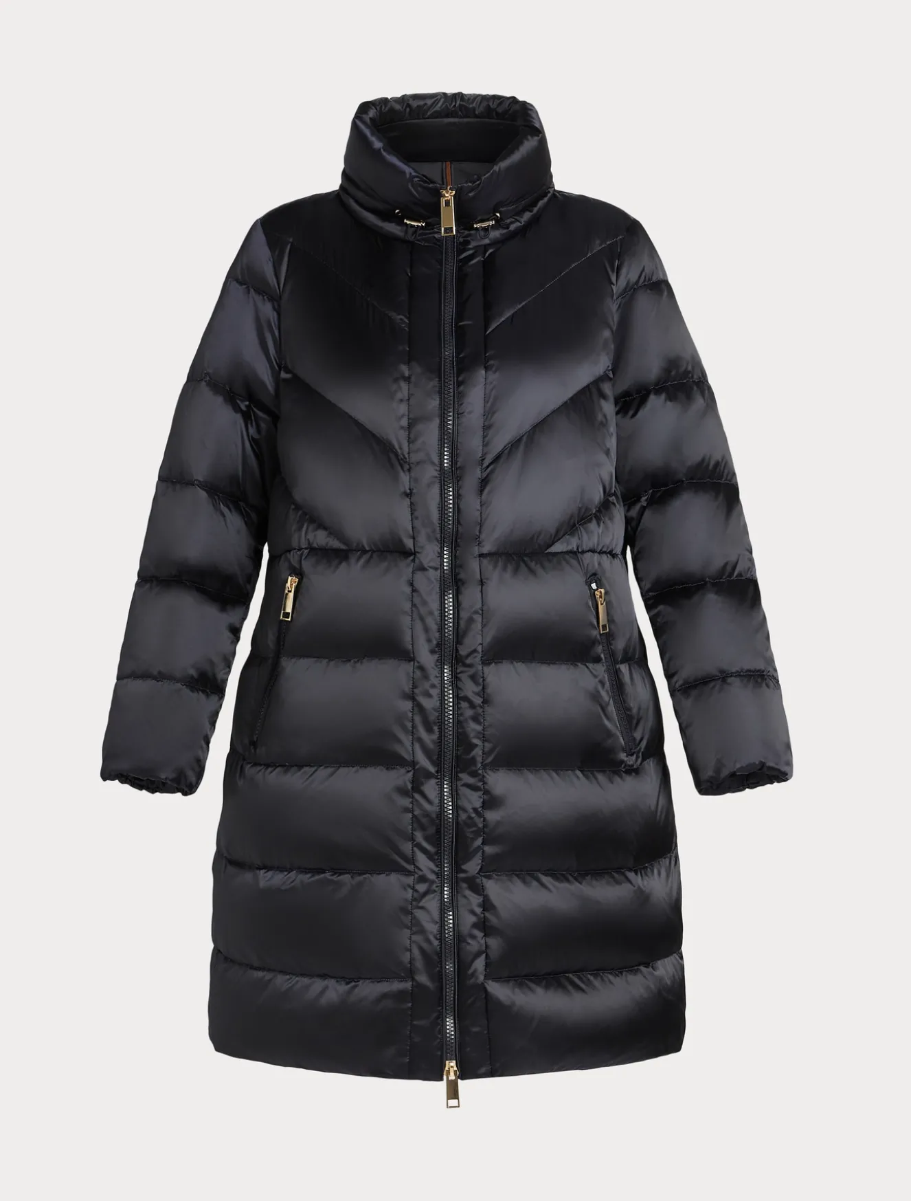 Imbottitura in vera piuma per il piumino in tela di nylon antigoccia, con linea svasata e taglio e coulisse interna in vita. Confortevole e pregiato, da abbinare a tutto il guardaroba.Il capo fa parte della collezione Marina Sport.
