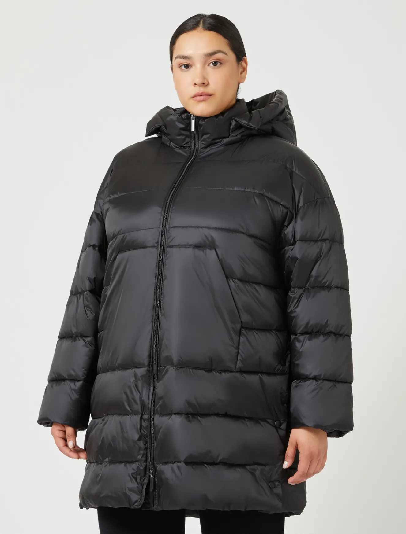 Perfetto per il city-chic in tessuto tecnico con giochi di trapunte collo, cappuccio removibile, maniche lunghe e tasche a marsupio.Il capo fa parte della collezione Persona by Marina Rinaldi.