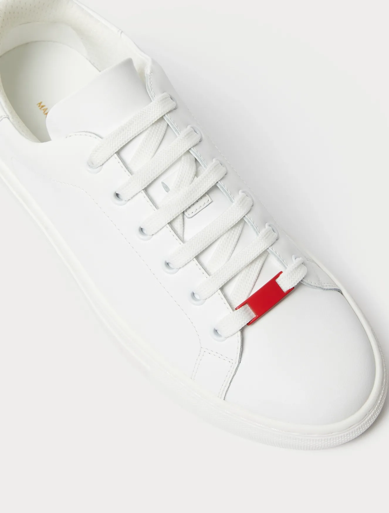 Fascino senza tempo per le sneakers in pelle bianca, con targhetta in metallo intercambiabile. Saranno all’altezza di tutti i tuoi look casual.