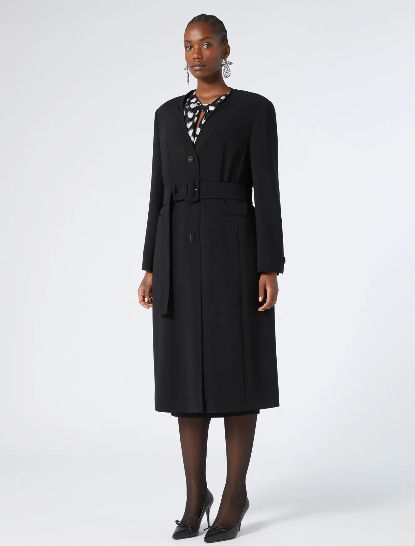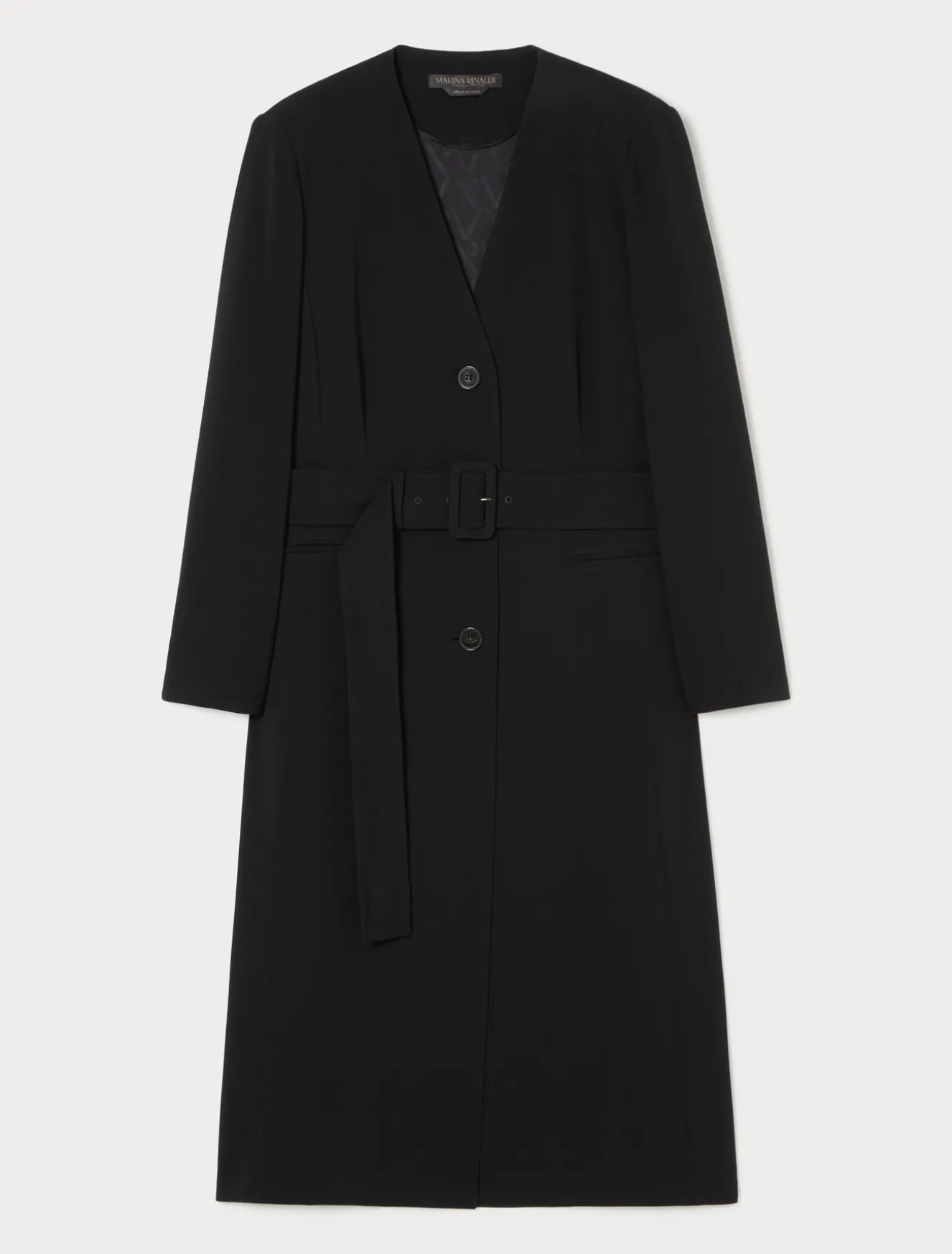 Eleganza versatile per lo spolverino in cady triacetato comfort. Lo puoi regolare in vita con la cintura in coordinato con fibbia ricoperta.