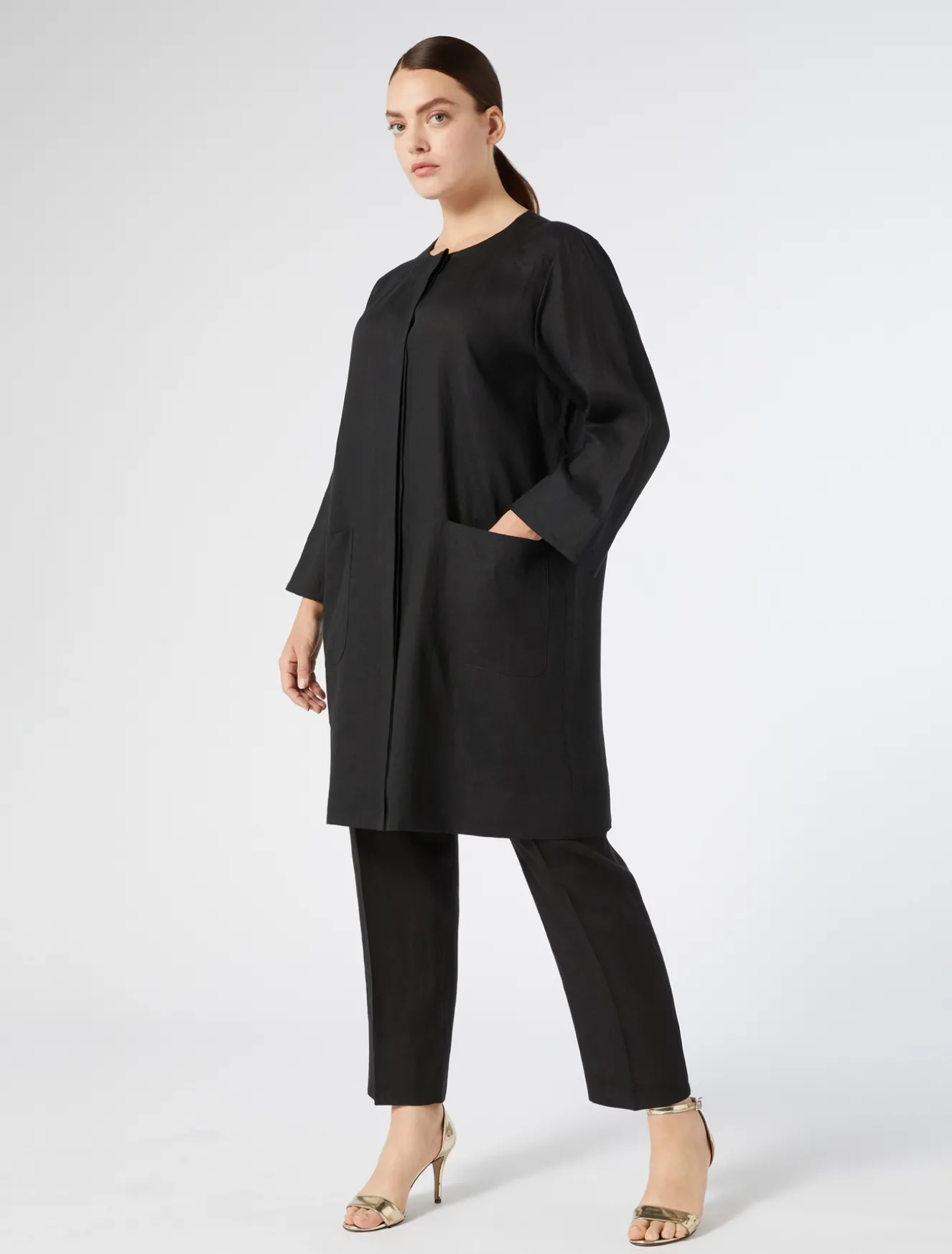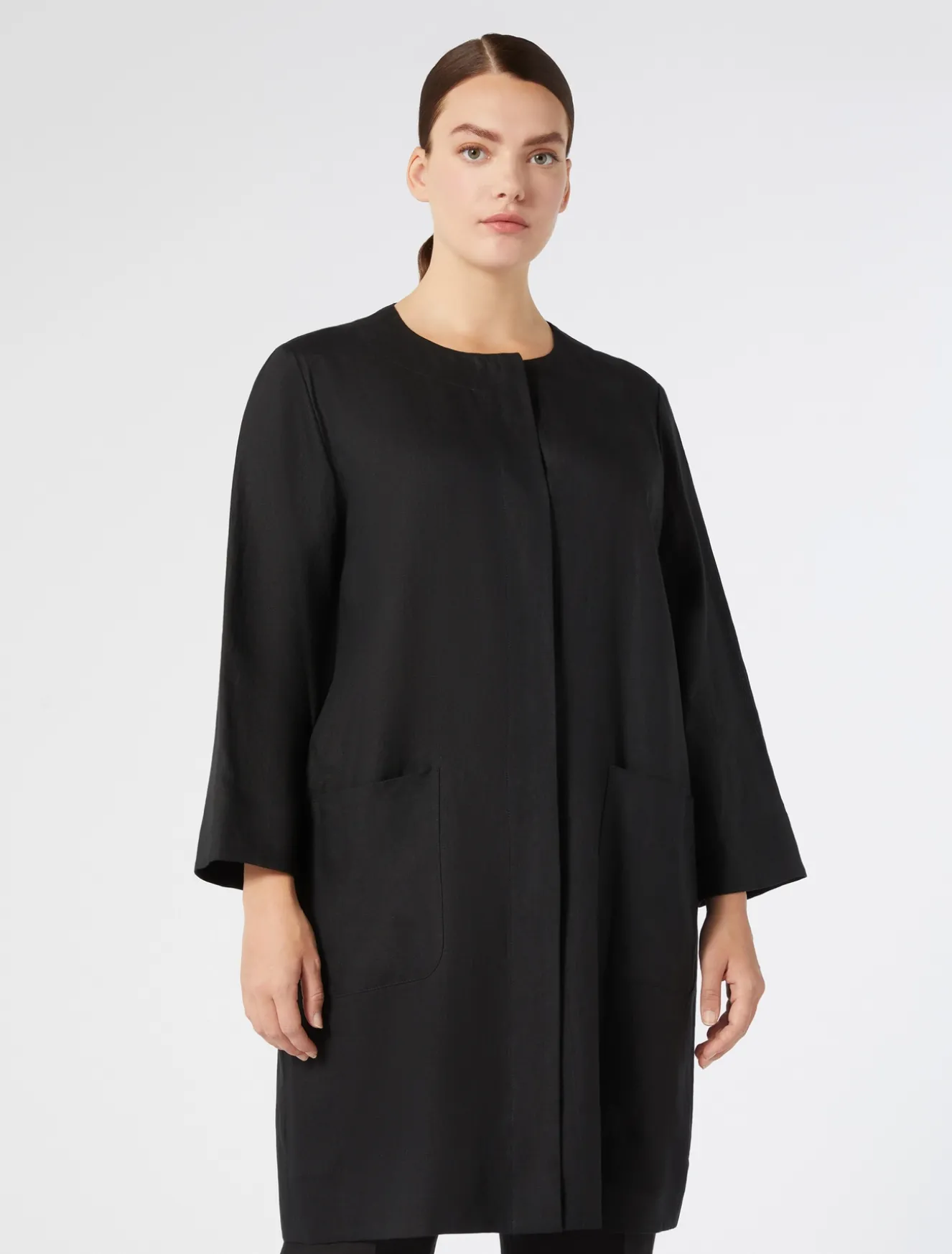 È realizzato in tela leggera di puro lino, lo spolverino dalla linea dritta. Tessuto quotidiano e design attuale per completare con una nota inedita i tuoi look anche in abbinamento ai pantaloni o ai bermuda in coordinato. Il capo fa parte della main collection Marina Rinaldi.