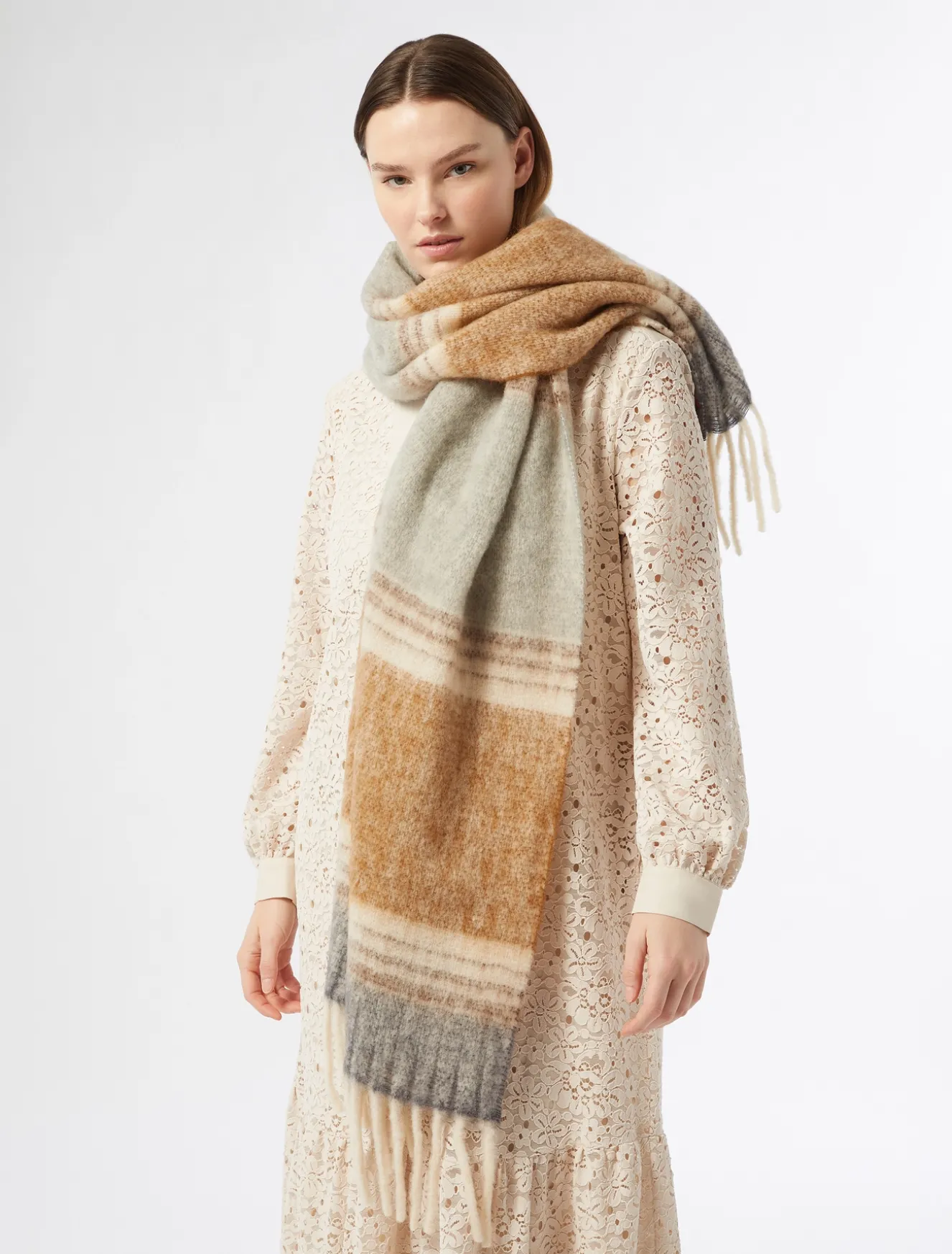 Morbida e versatile la stola in misto lana soffice multicolor, rifinita da frange al fondo. Per dare un tocco cromatico allo stile.Il capo fa parte della collezione Marina Sport.