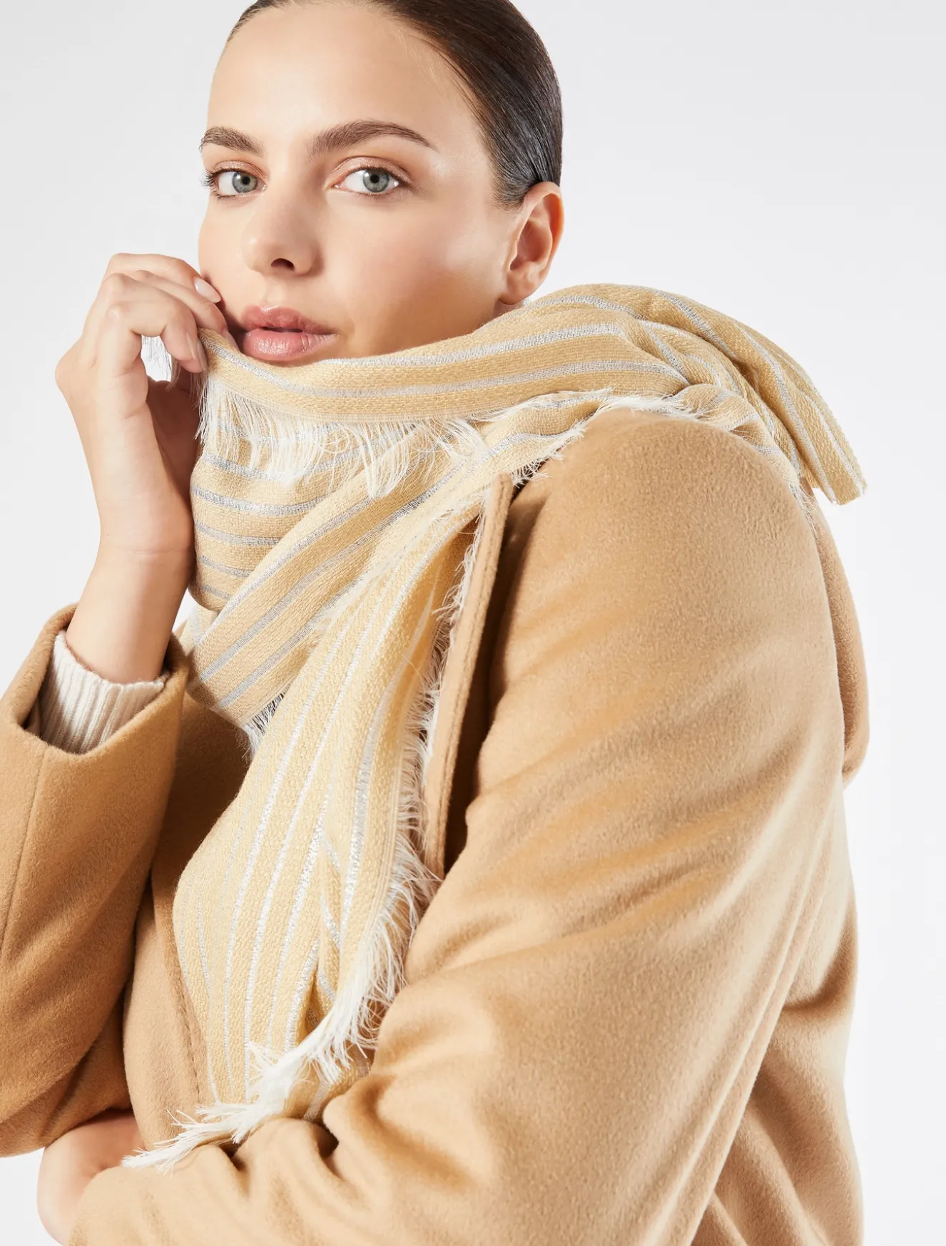 Pattern dallo stile senza tempo per la stola in tessuto gessato, versatile per più occasioni. L’accessorio fa parte della collezione NOW by Marina Rinaldi.