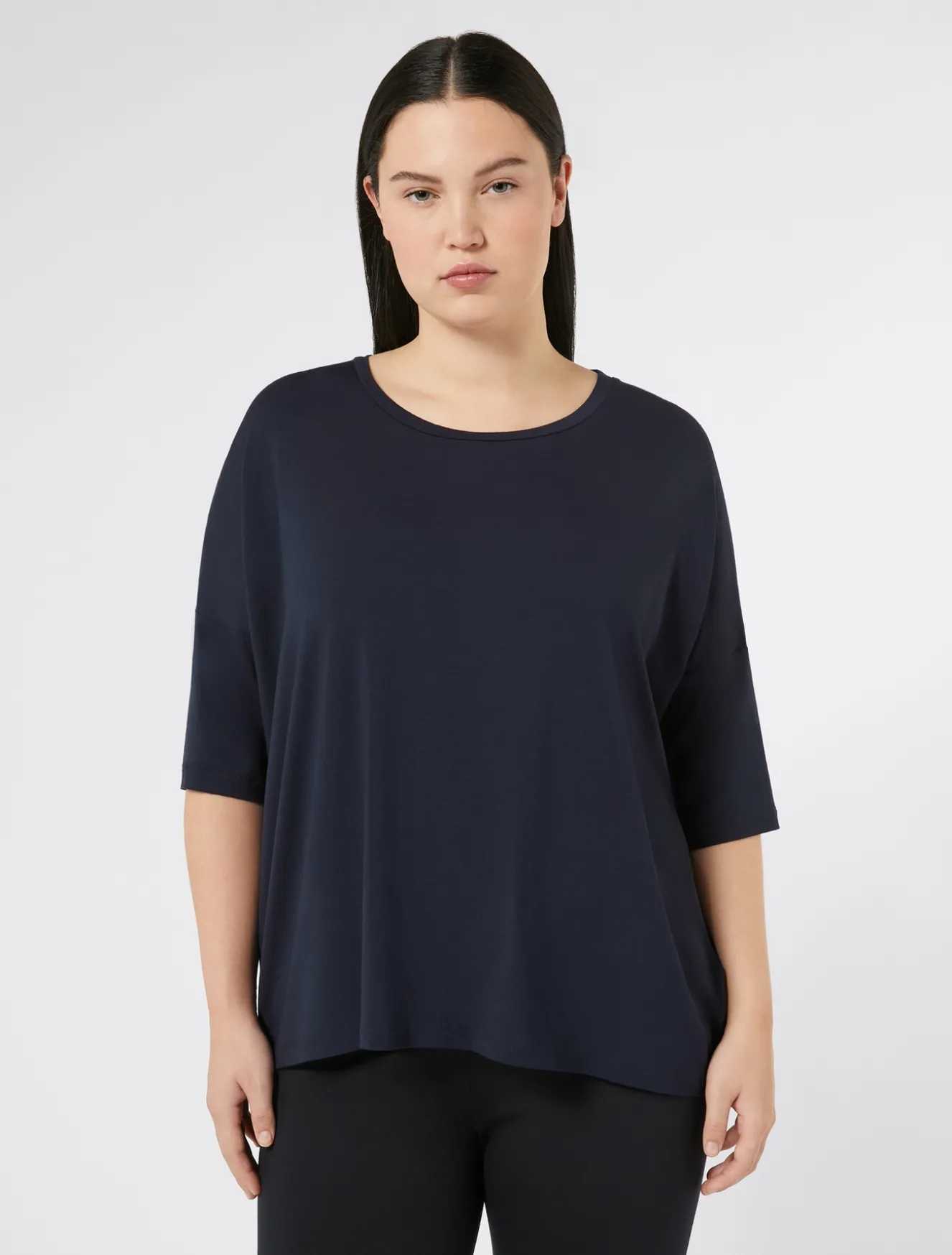 Linea over per la T-shirt in jersey di viscosa dal fascino versatile. Key-item del guardaroba quotidiano.
