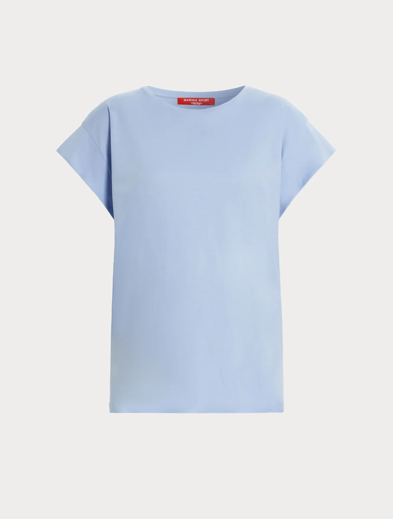 Essenziale e femminile la T-shirt in jersey di cotone, dalla linea dritta. Jolly del guardaroba da interpretare come vuoi.Il capo fa parte della collezione Marina Sport.