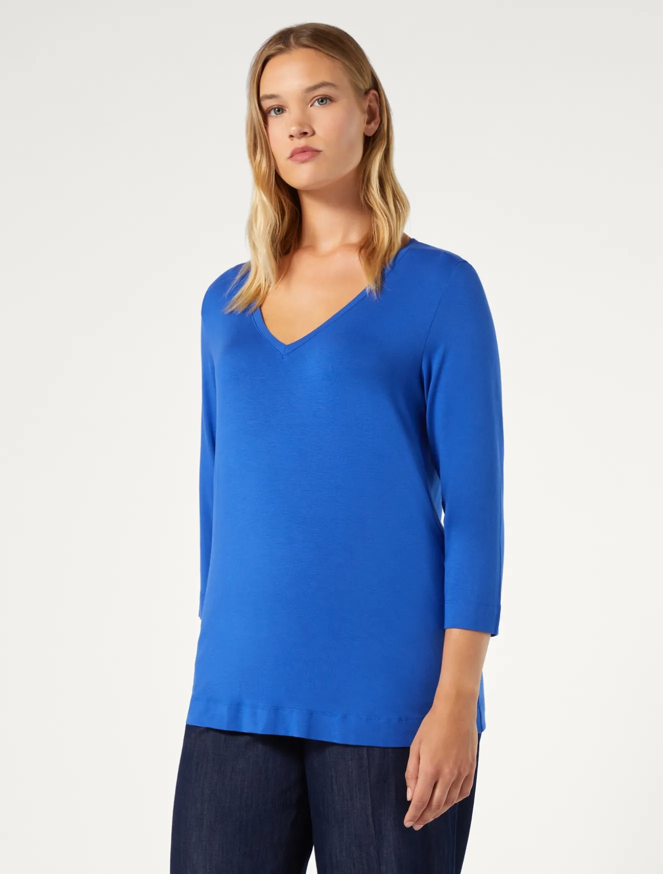 È realizzata in morbido jersey di viscosa la T-shirt, dalla linea dritta. Da abbinare a tutto il guardaroba.Il capo fa parte della collezione Voyage.