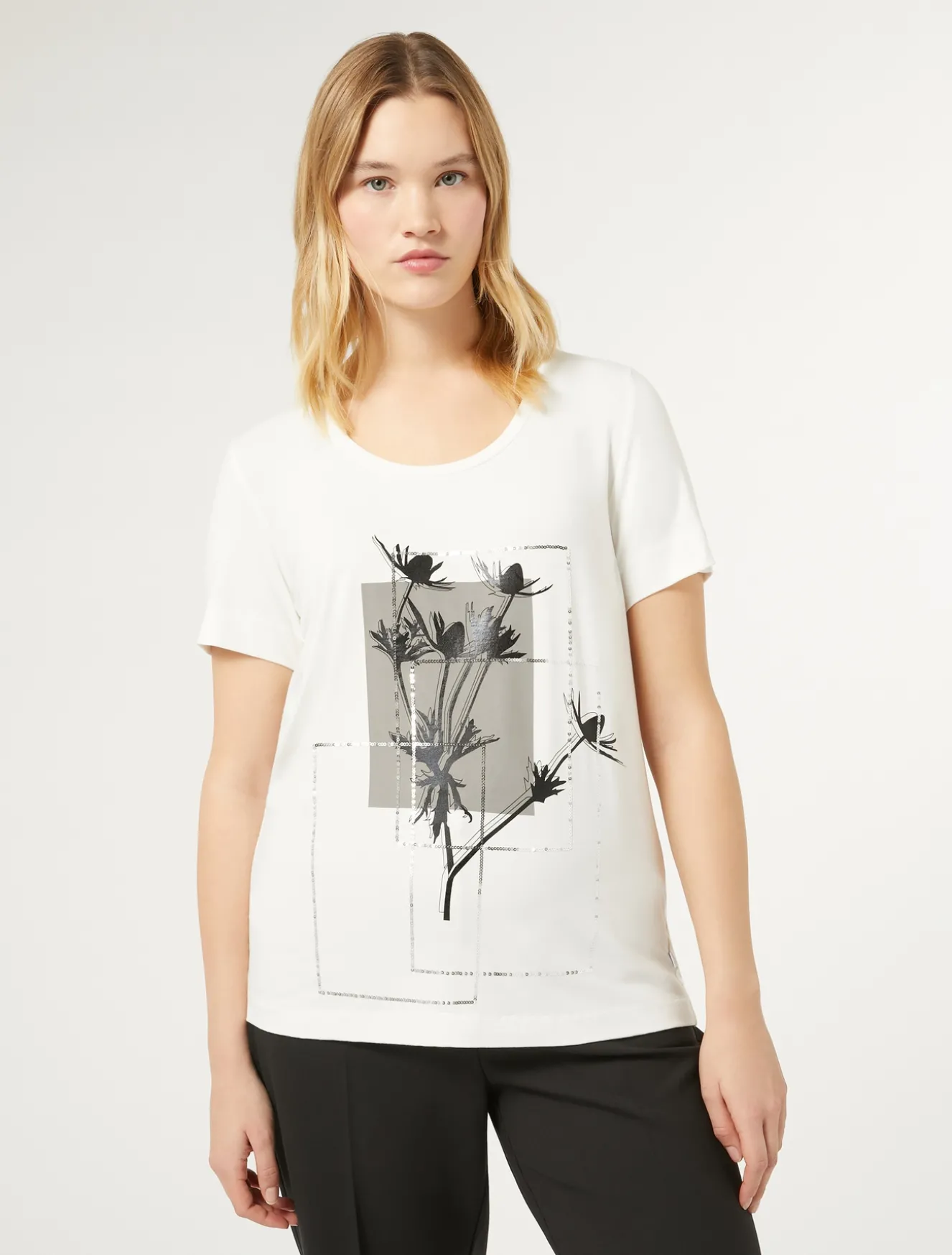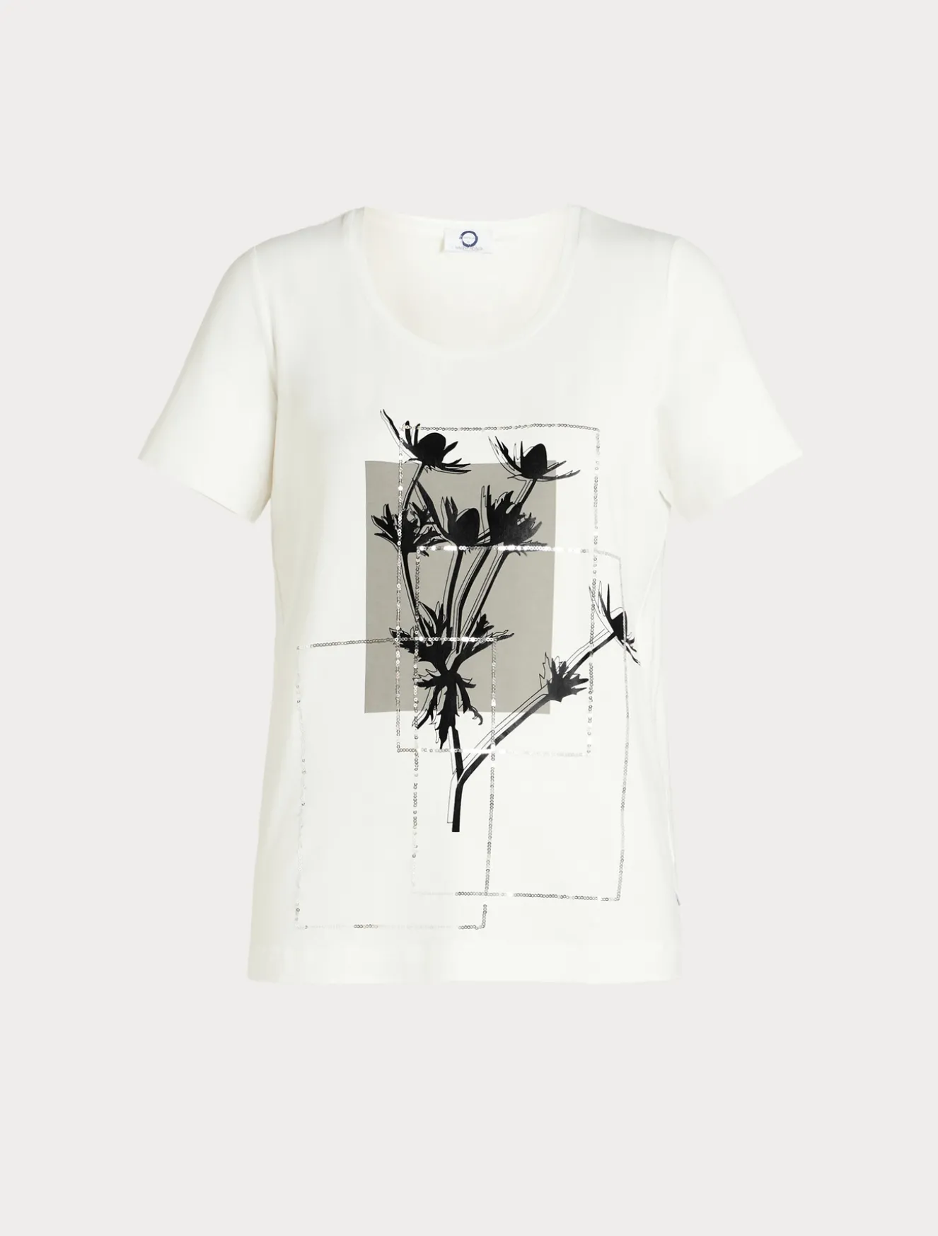 È impreziosita da ricami di paillettes e stampa la T-shirt in morbido jersey di viscosa stretch. Essenziale e chic allo stesso tempo.Il capo fa parte della collezione Voyage.