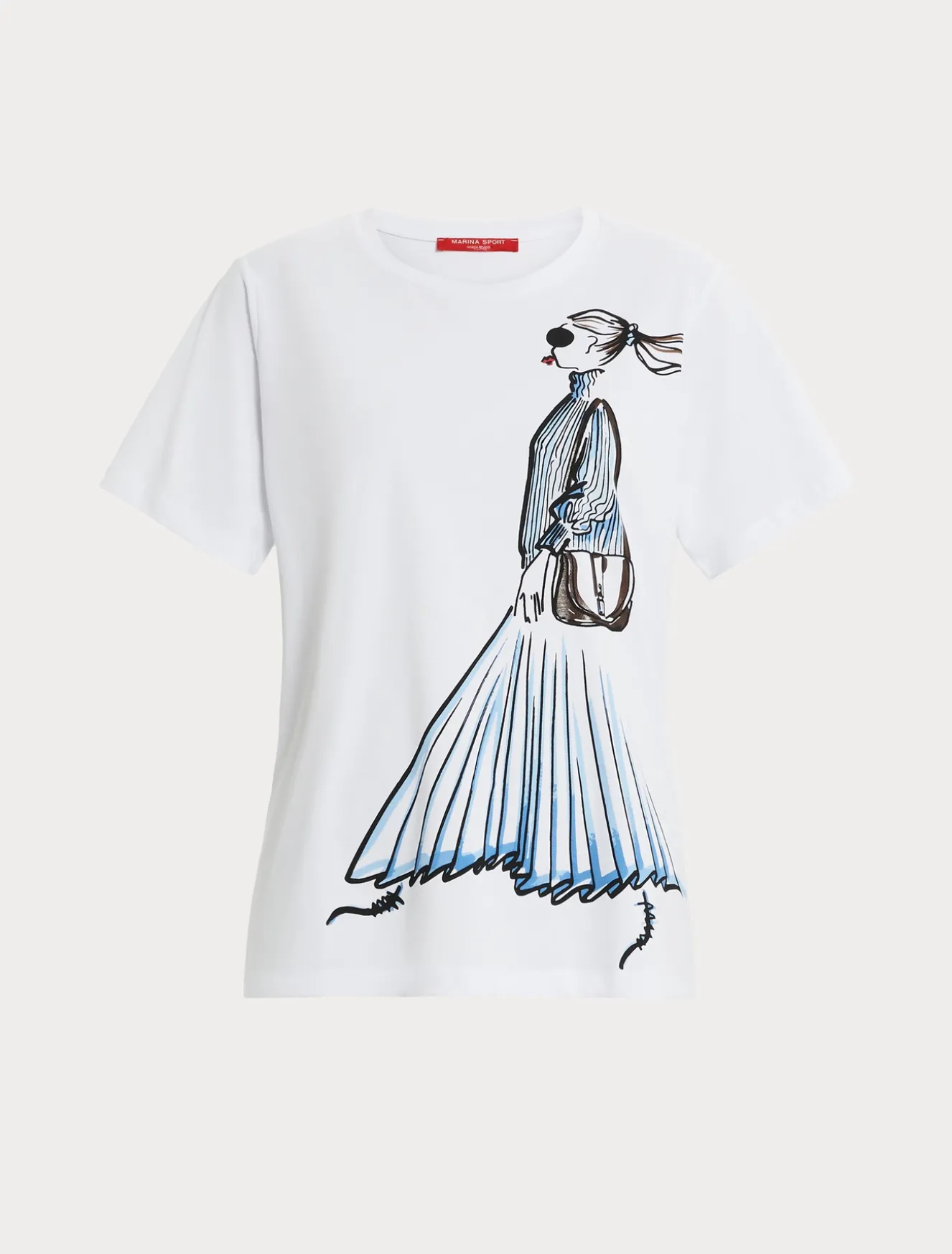Dona carattere allo stile la T-shirt in jersey con stampa davanti. Perfetta per arricchire il tuo repertorio di T-shirt.Il capo fa parte della collezione Marina Sport.
