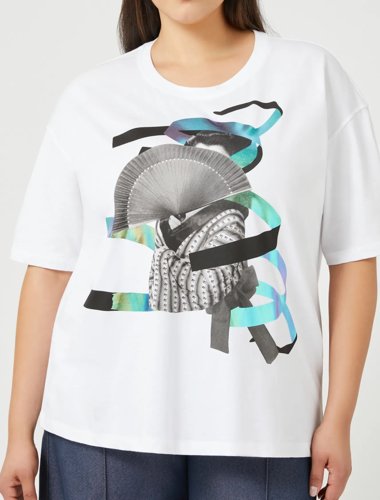 Esibisce una stampa con dettagli laminati la T-shirt in jersey di cotone, dalla linea over. Da interpretare in una miriade di look.Il capo fa parte della Capsule Sara Battaglia di Marina Rinaldi.