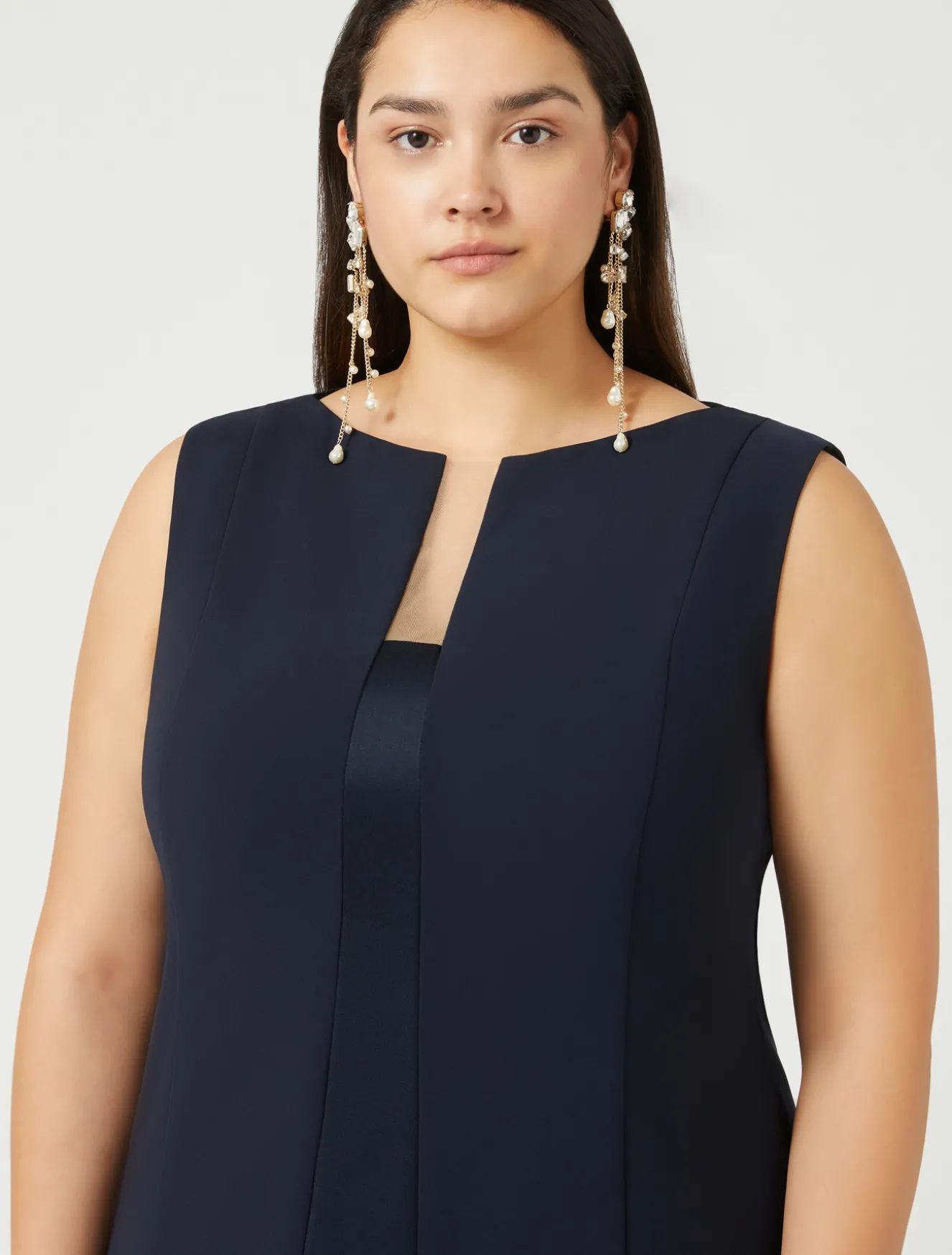 Linea aderente con tagli verticali e intarsio in tessuto lucido al centro per il top in cady triacetato comfort, un tessuto fluido, anti-imperfezioni e di facile manutenzione. Da abbinare alla giacca in coordinato.Il capo fa parte della collezione Elegante.