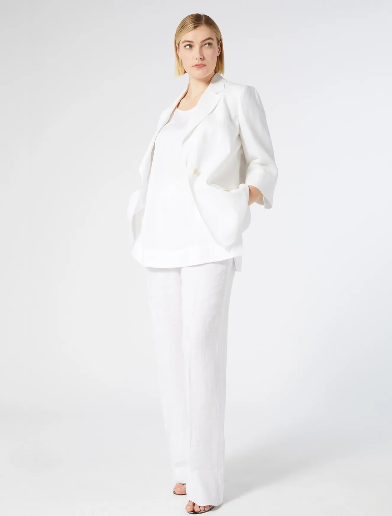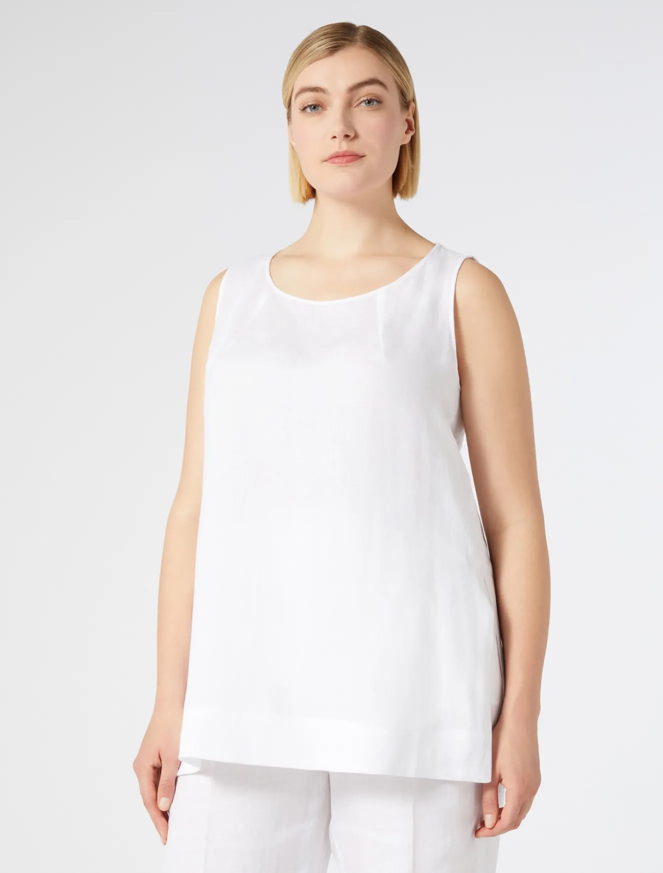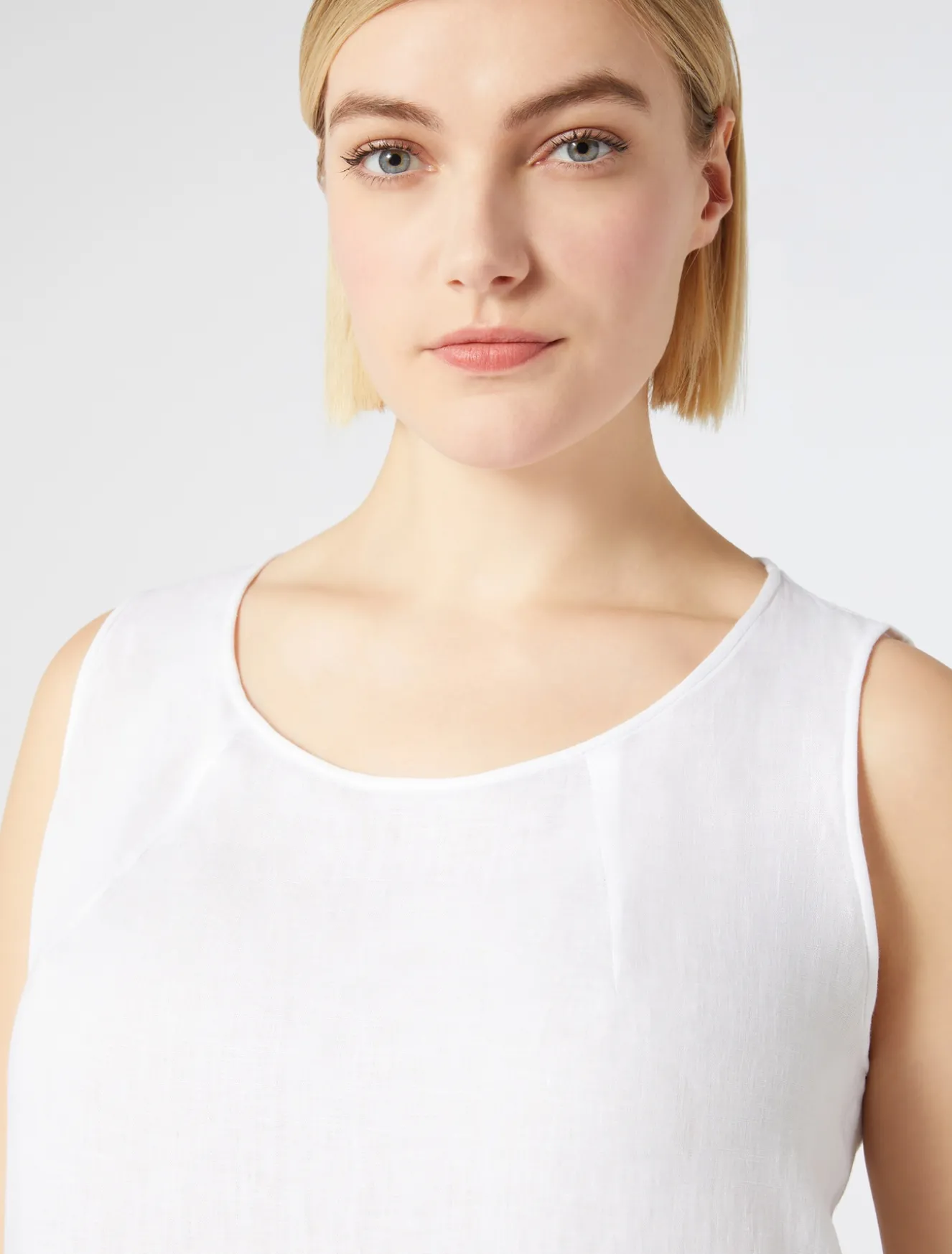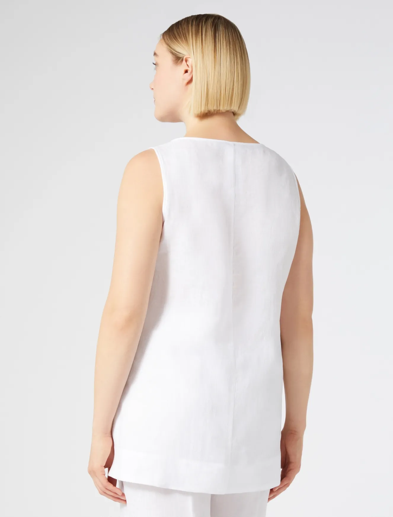 È rifinito da impunture invisibili il top in tela leggera di puro lino délavé, dalla linea dritta. Fresco, versatile e ricercato, ideale per completare qualsiasi look daily, anche in abbinamento a blazer, pantaloni o gonna in coordinato. Il capo fa parte della main collection Marina Rinaldi.