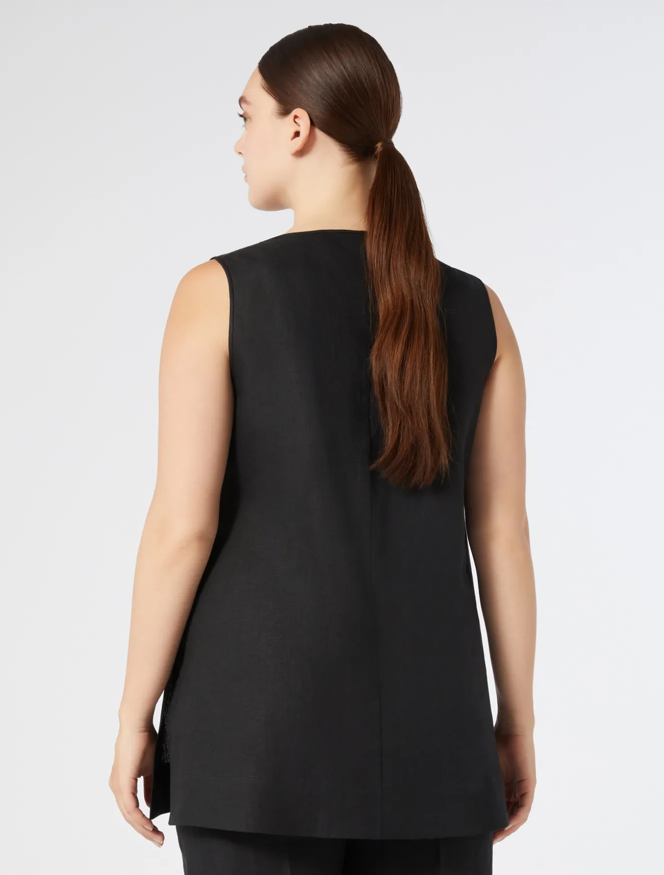 È rifinito da impunture invisibili il top in tela leggera di puro lino délavé, dalla linea dritta. Fresco, versatile e ricercato, ideale per completare qualsiasi look daily, anche in abbinamento a blazer, pantaloni o gonna in coordinato. Il capo fa parte della main collection Marina Rinaldi.