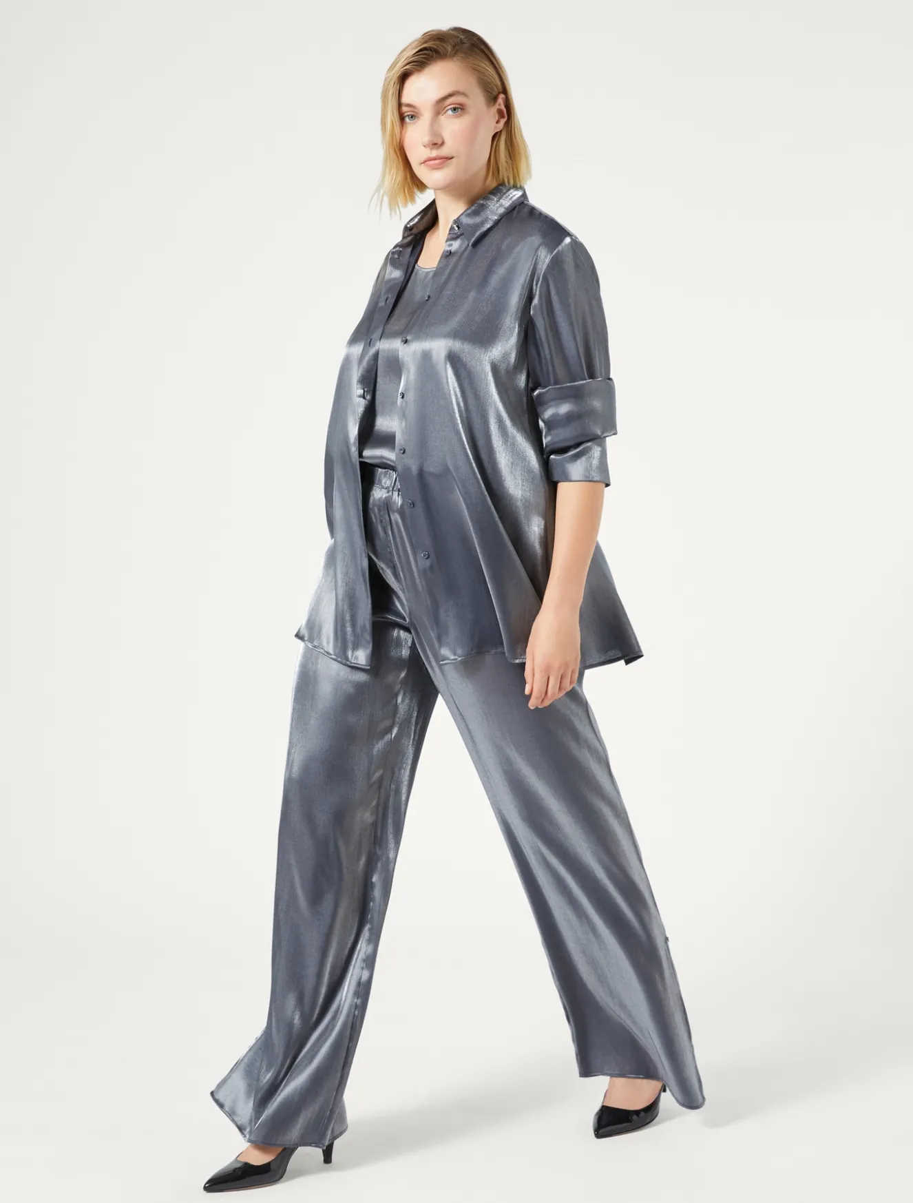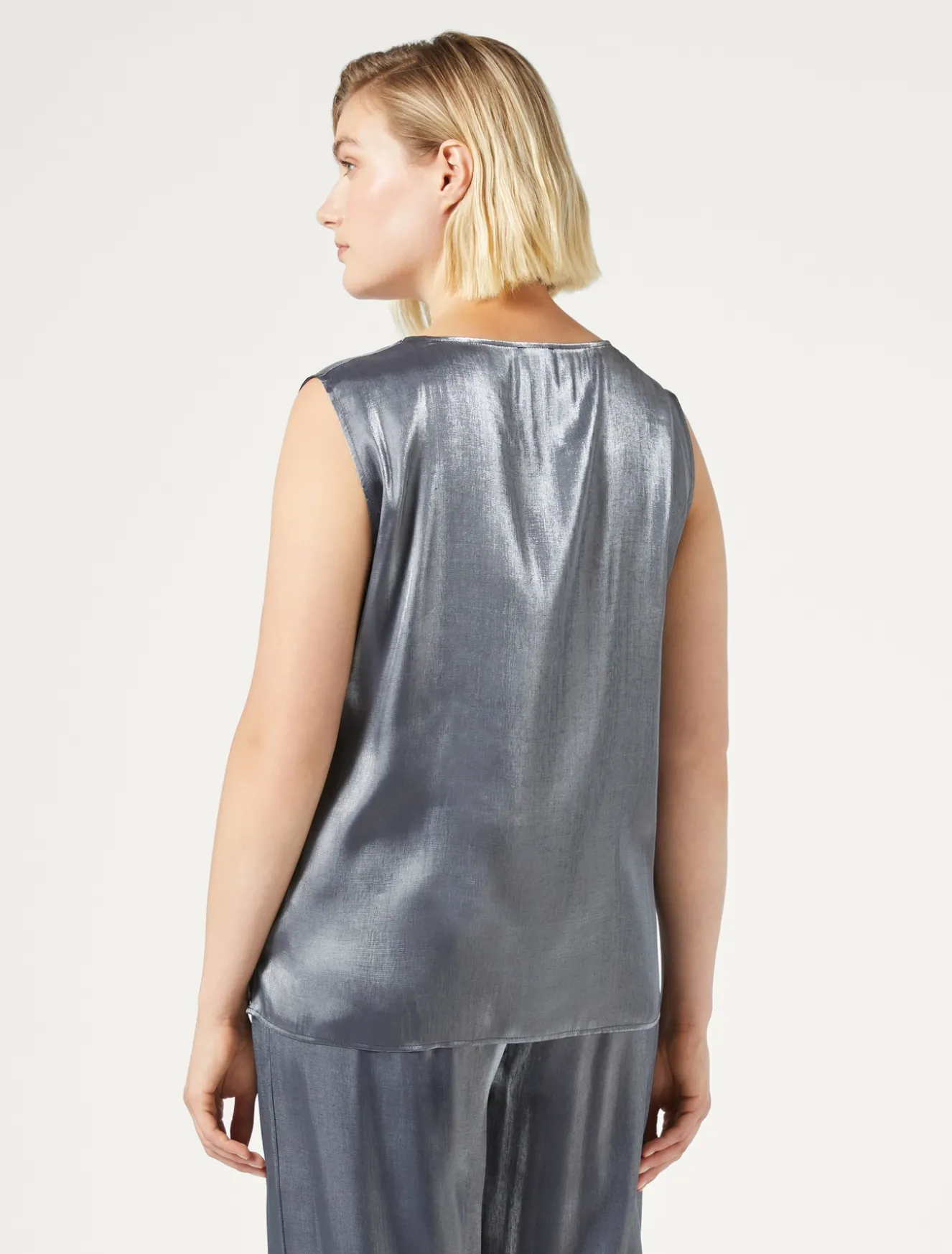 Easy da abbinare il top in viscosa con scollo tondo, dalla linea dritta. Ha maniche corte che puoi applicare con un semplice intervento di sartoria. Puoi indossarlo da solo, come sottogiacca o in layering.Il capo fa parte della collezione Persona by Marina Rinaldi.