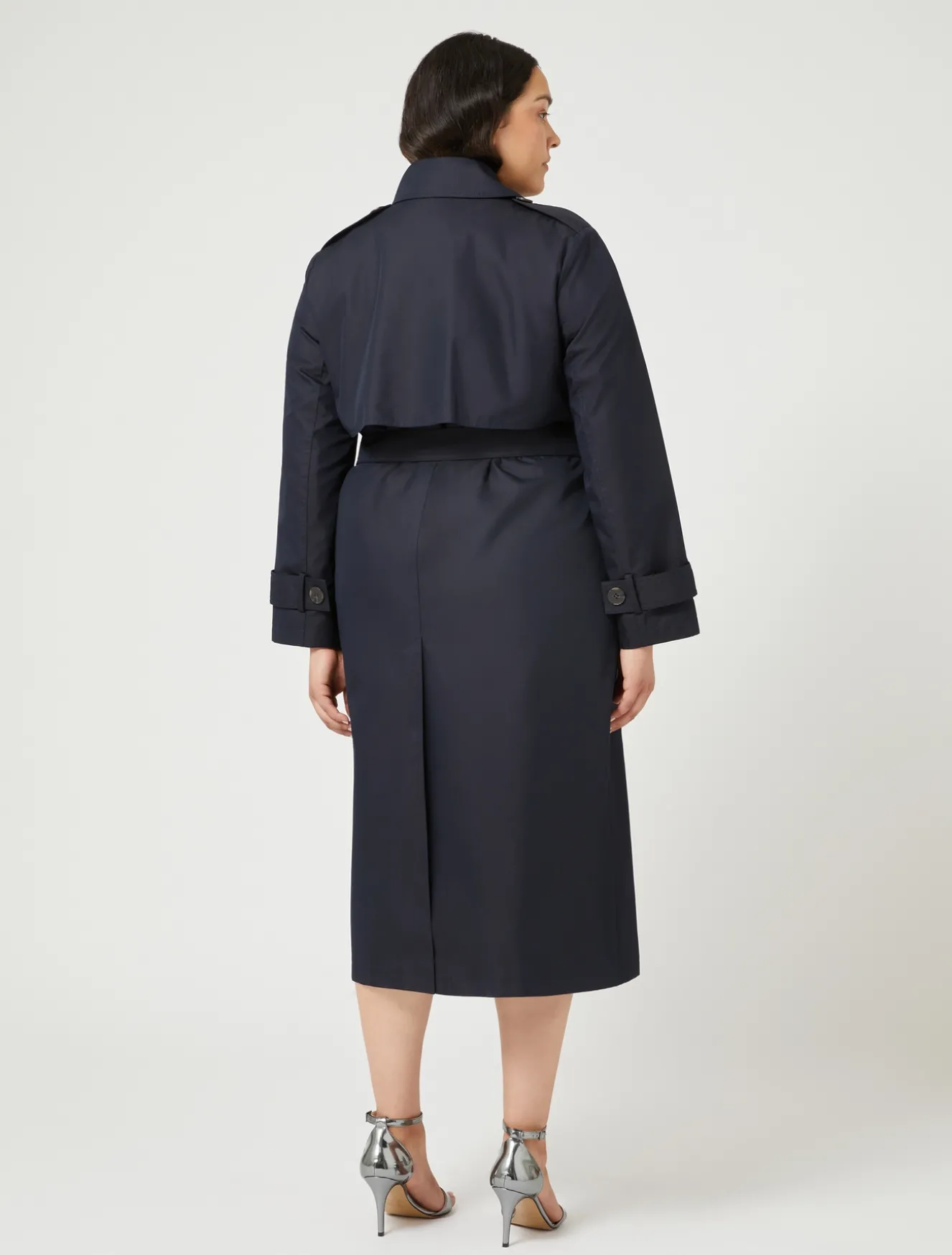 Vero key item del guardaroba, questo trench impermeabile in cotone e nylon è costruito con bavolette agganciata con bottone davanti e libera sul retro. Lo puoi regolare in vita con la cintura in coordinato. Il capo fa parte della main collection Marina Rinaldi.